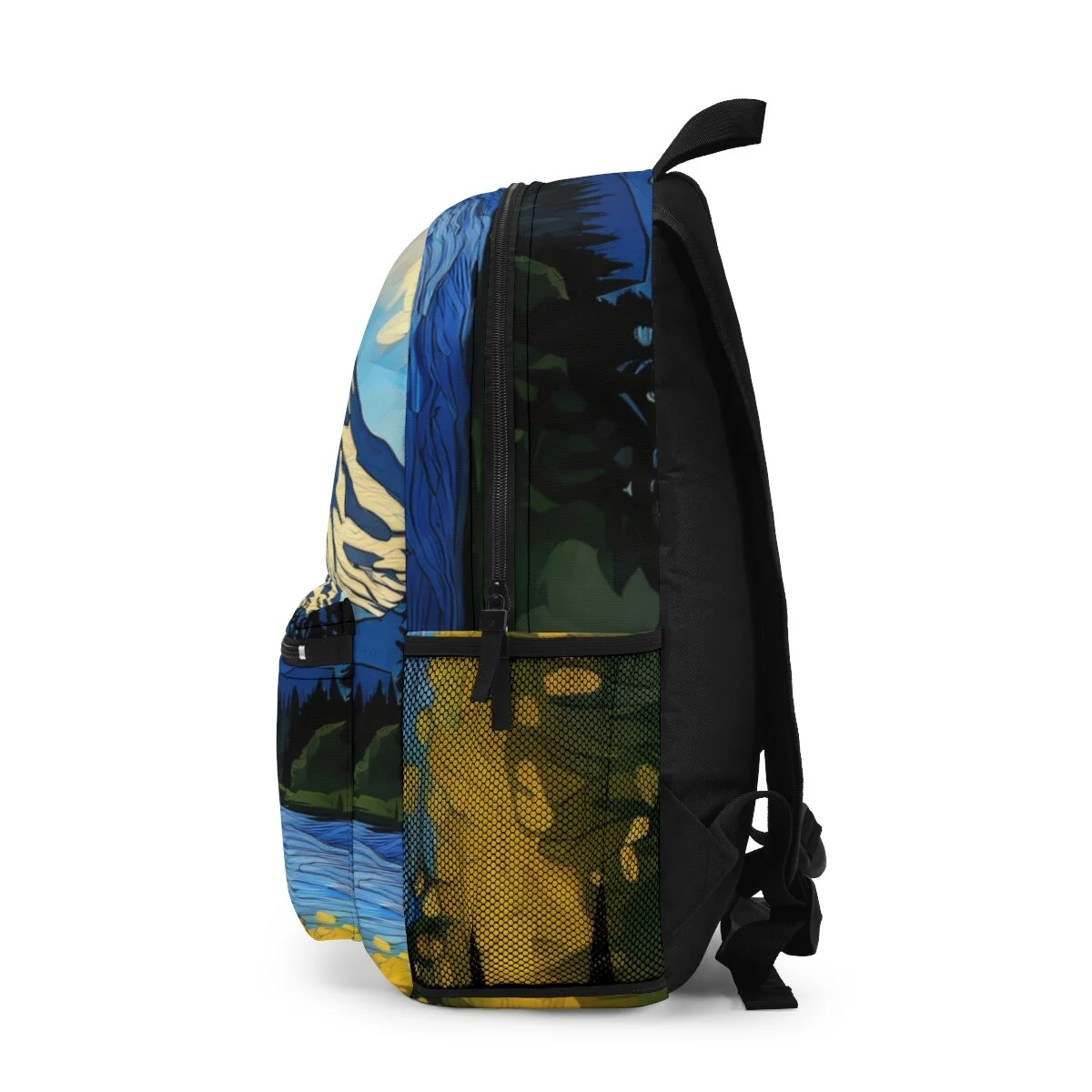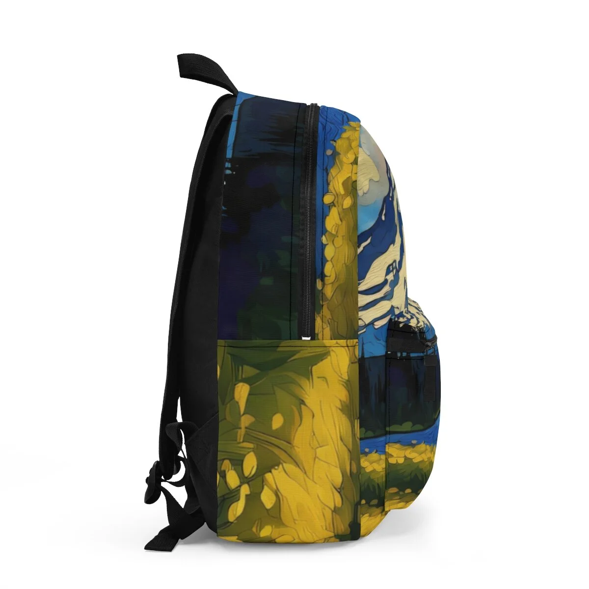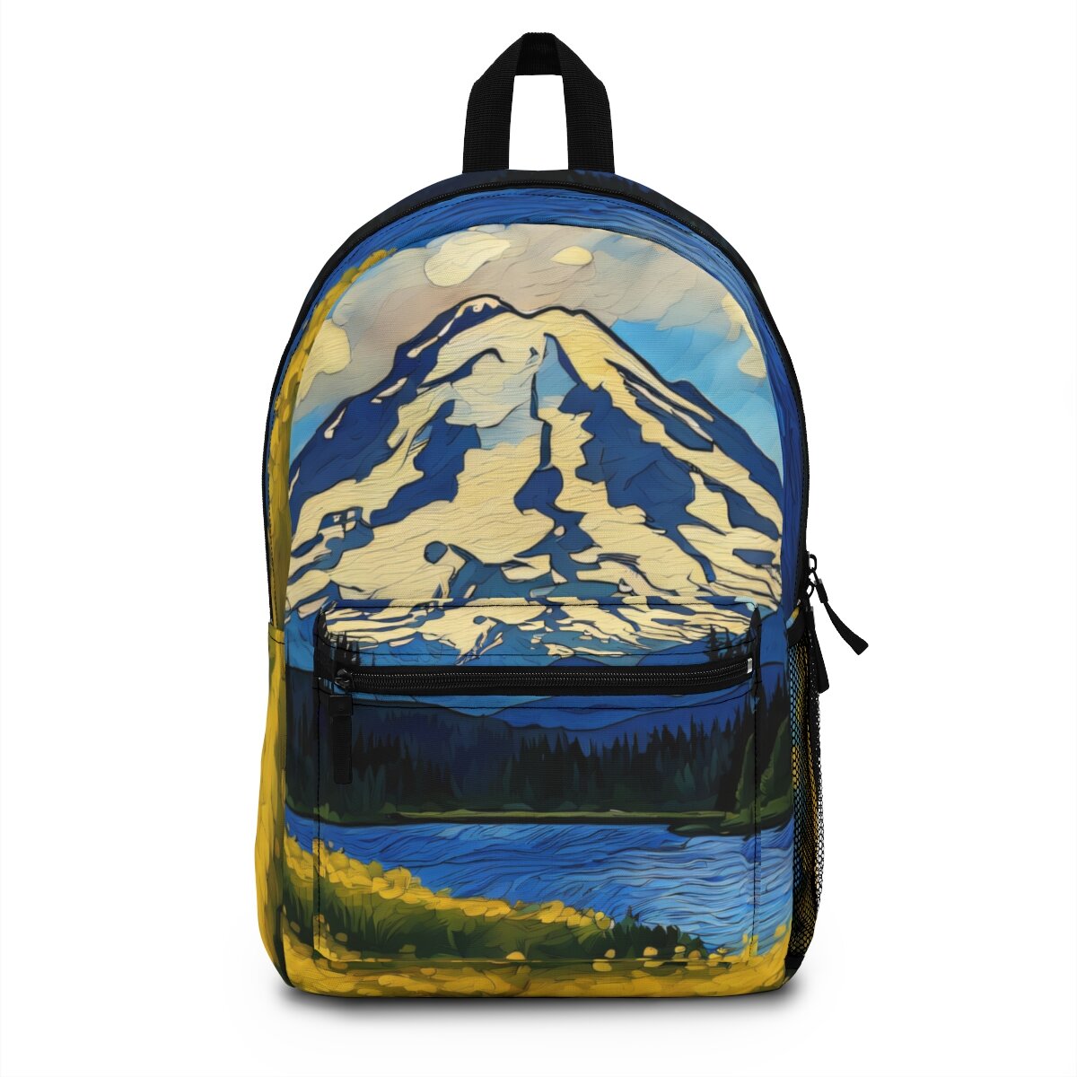 The A Day At Mount Rainier Backpack combines great looks and functionality in a beautiful package. You'll have another reason to smile every time you leave your home with this backpack This bag is made from spun polyester and weights 1.3 lbs., just enough to be light, strong and long-lasting. Grab it, stow it, throw it onto the seat next to you, this backpack can take it, and so will you, wherever you go!