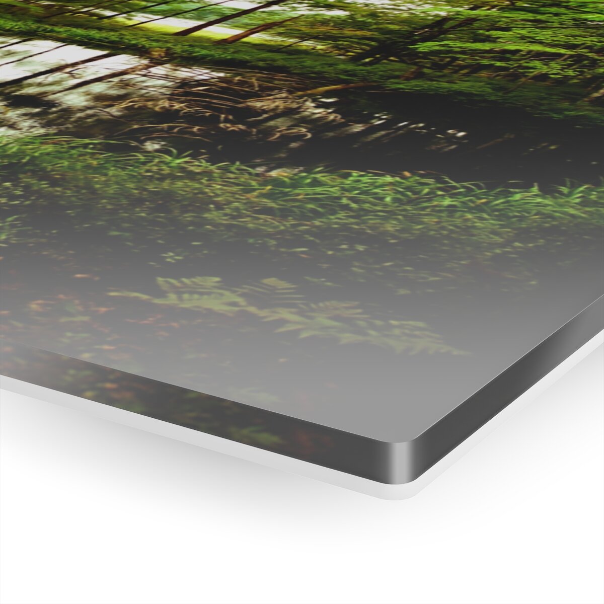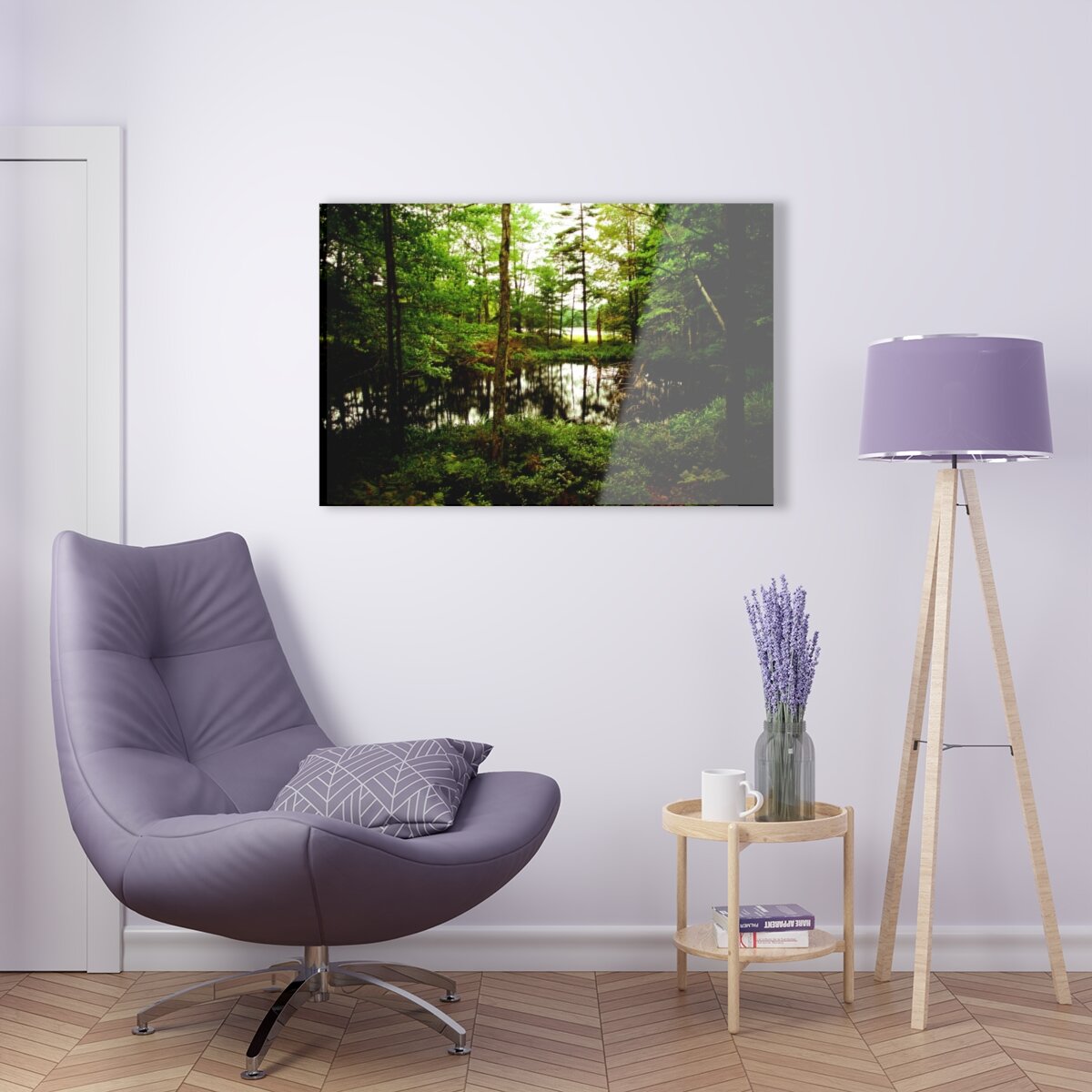 Look at the image of the A Quiet Moment At The Pond Cutting Board, relax and enjoy a tranquil moment. Made to seem like your photo is printed on a glass surface, these acrylic photo prints never fail to dazzle. Your images are second-surface printed directly on a 1/4" acrylic panel for a stunning result. Each acrylic print comes ready to hang, and floats 1.5" off the wall.