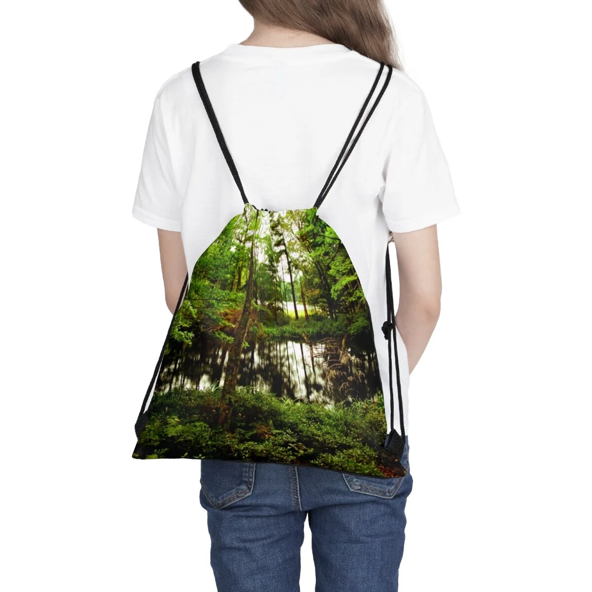 Take the serenity and beauty of the forest with you, with the A Quiet Moment At The Pond Outdoor Drawstring Bag.This drawstring bag is here to become a daily go-to choice that is both stylish and practical. On top of good looks, the broadcloth fabric makes each bag supremely soft to the touch.