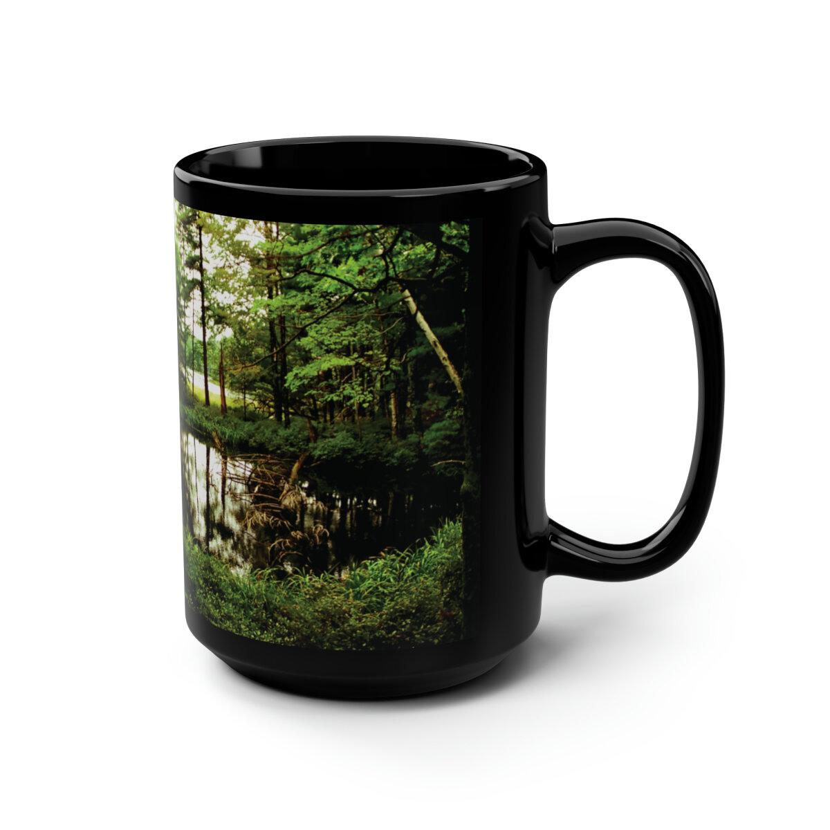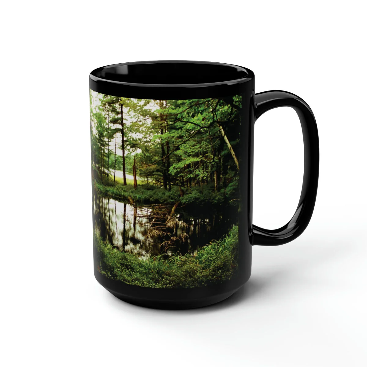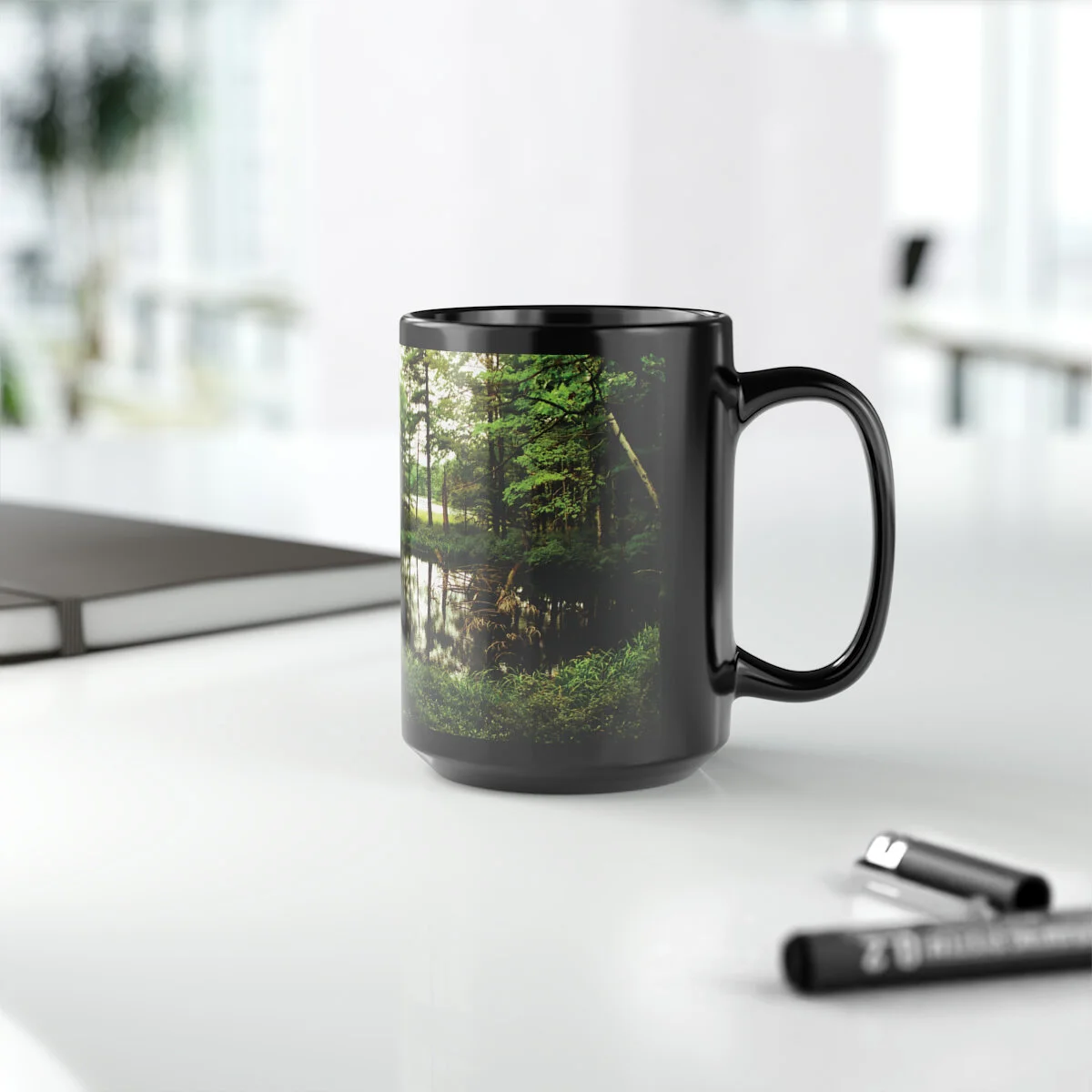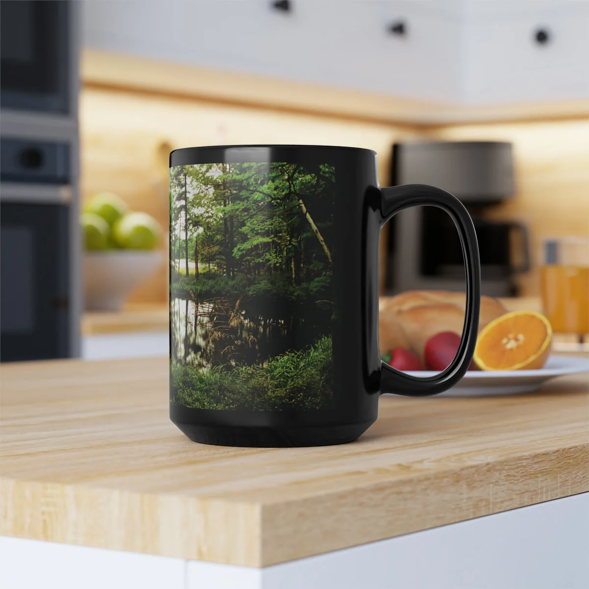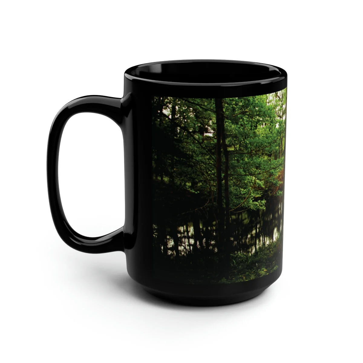 These black mugs come in one size – 15oz (0.44l) – plenty for morning caffeine boosts and hot cups of tea on a rainy day. They're easy to grip and feel sturdy thanks to the C-shaped handle. The A Quiet Moment At The Pond image compliments this black coffee mug perfectly while creating a relaxing mood as you enjoy your favorite hot beverage. The black ceramic material has a high quality gloss finish.