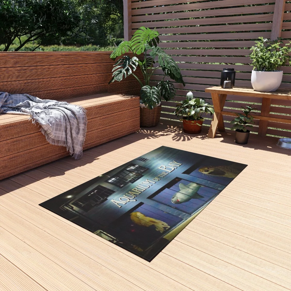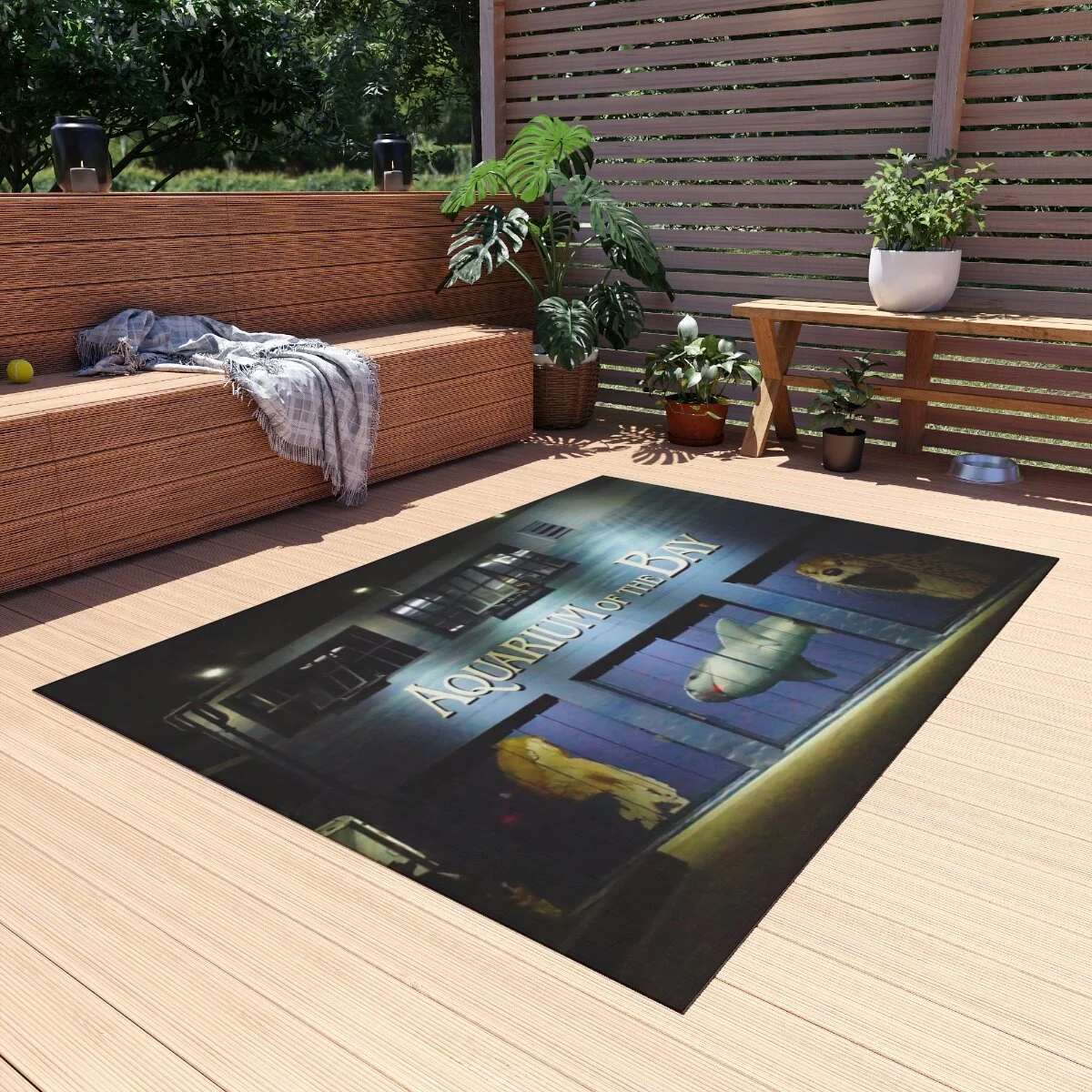 This photo is of the Aquarium of the Bay, in San Francisco, California. Night photos combined with complimentary colors can really add a spark to a space by providing a striking contrast.These non-slip outdoor rugs bring alfresco chilling to a whole new level of comfort. These rugs come in many different sizes to fit any patio or porch. Made from polyester chenille fabric— they're very durable, breathable, and dry quickly.