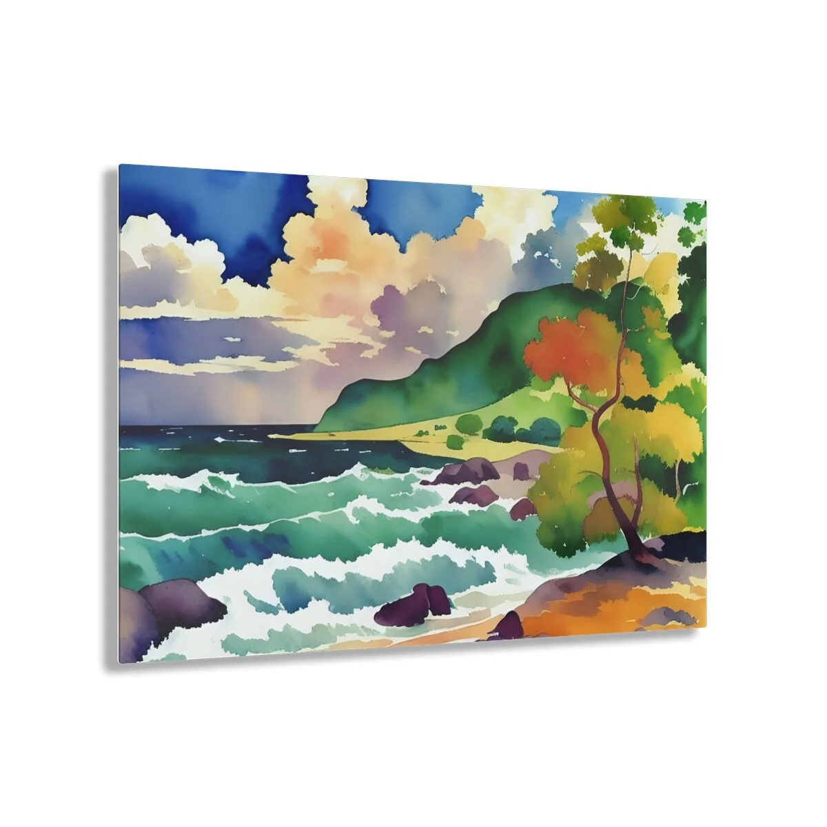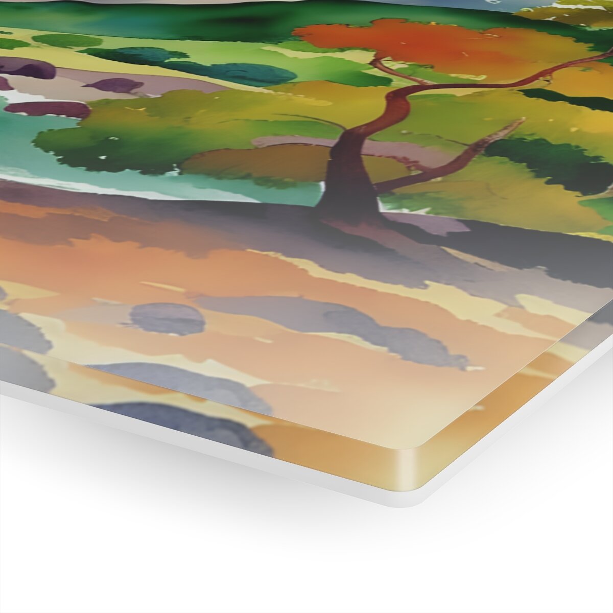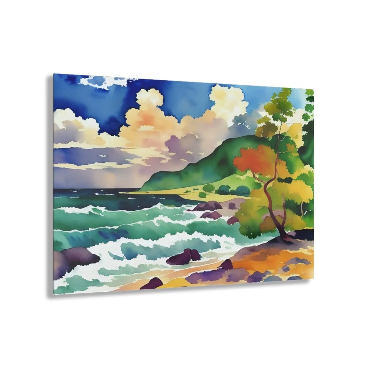 The Autumn Day At The Lakeshore watercolor captures a picturesque lakeside scene with a wonderful palette of colors. It makes a wonderful addition to the décor of a room. Made to seem like the image is printed on a glass surface, these acrylic watercolor prints never fail to dazzle. Your images are second-surface printed directly on a 1/4" acrylic panel for a stunning result. Each acrylic print comes ready to hang, and floats 1.5" off the wall.