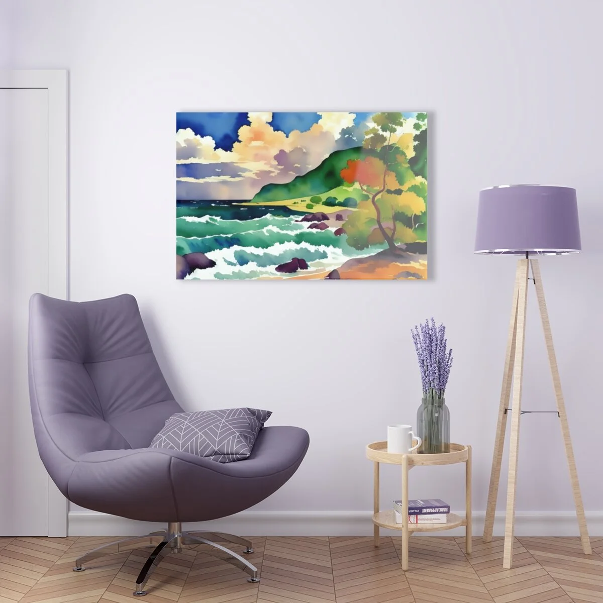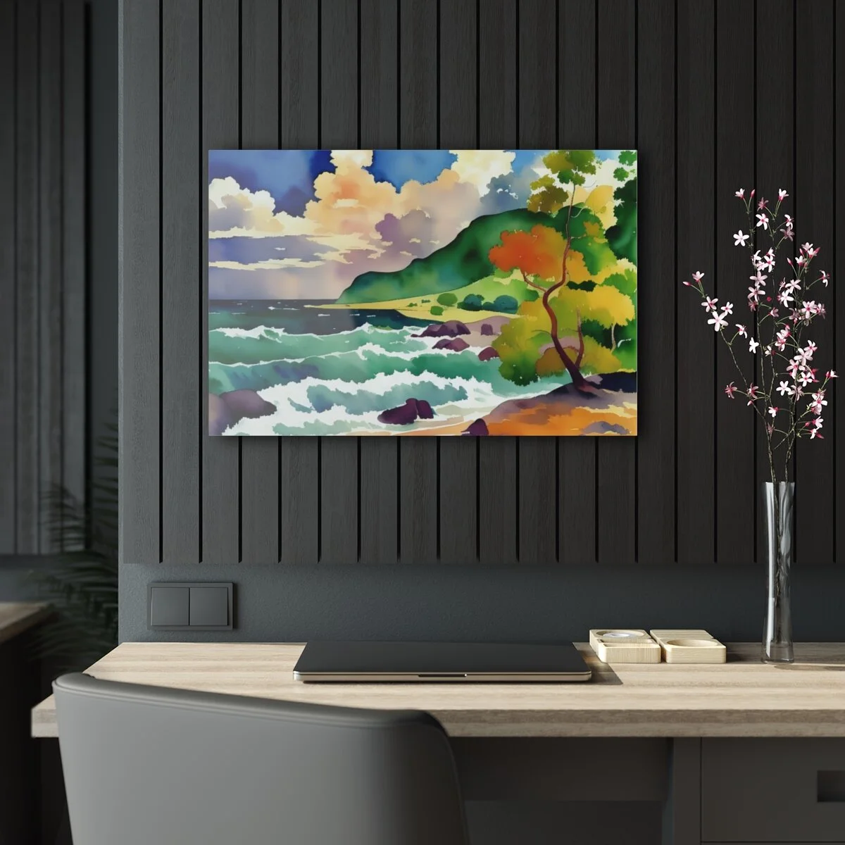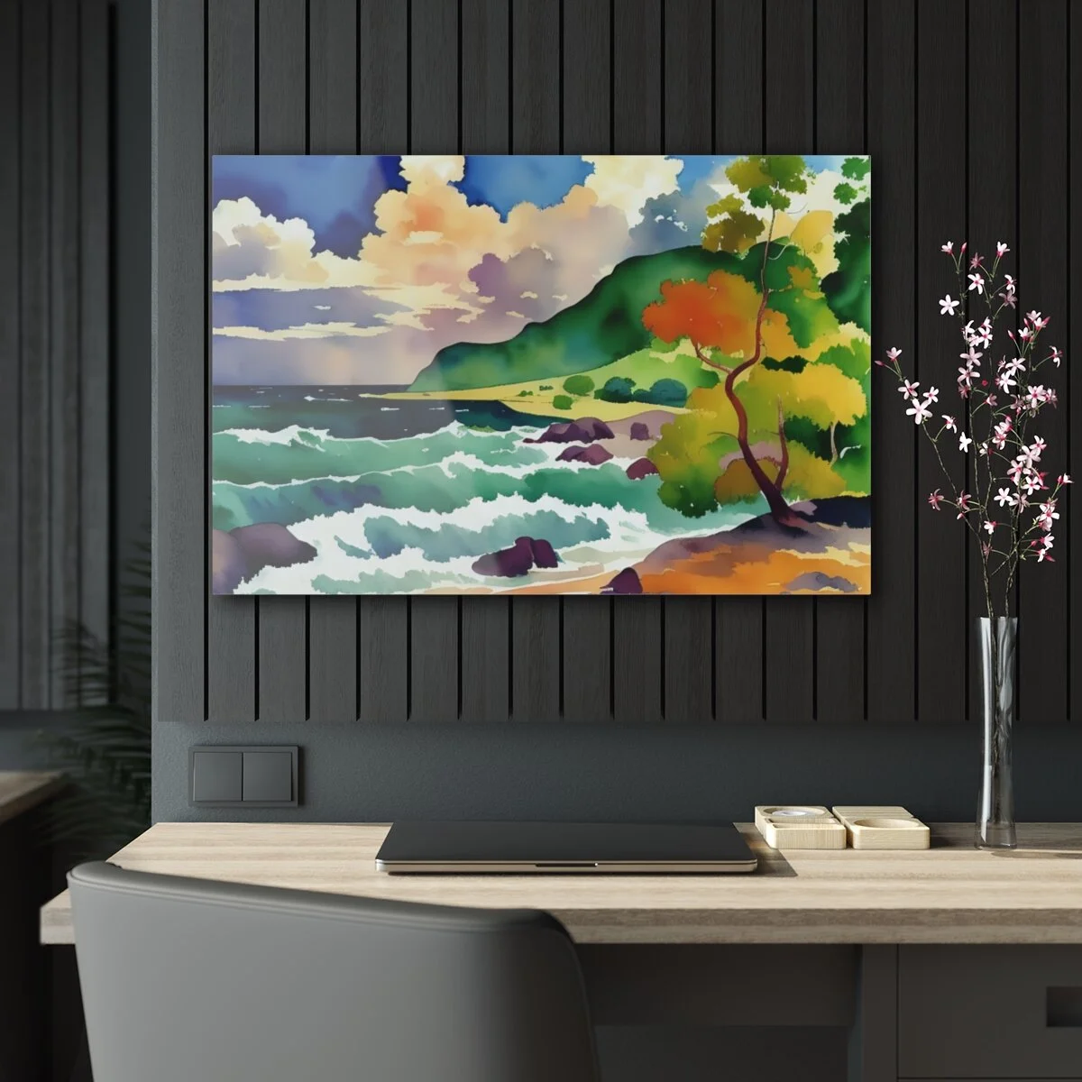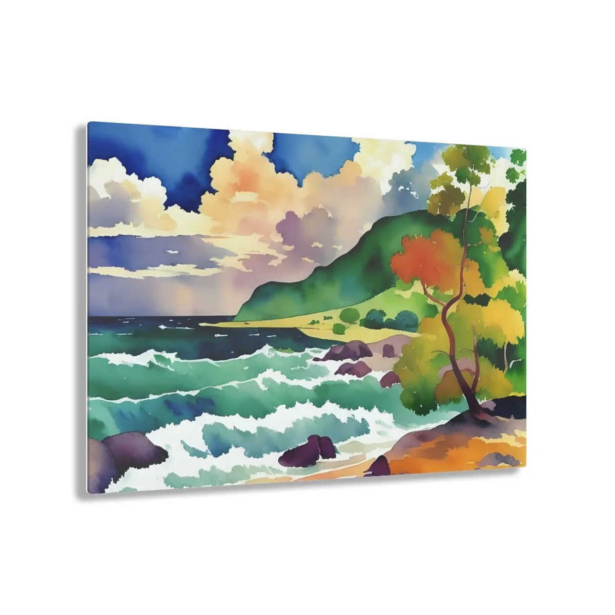 The Autumn Day At The Lakeshore watercolor captures a picturesque lakeside scene with a wonderful palette of colors. It makes a wonderful addition to the décor of a room. Made to seem like the image is printed on a glass surface, these acrylic watercolor prints never fail to dazzle. Your images are second-surface printed directly on a 1/4" acrylic panel for a stunning result. Each acrylic print comes ready to hang, and floats 1.5" off the wall.