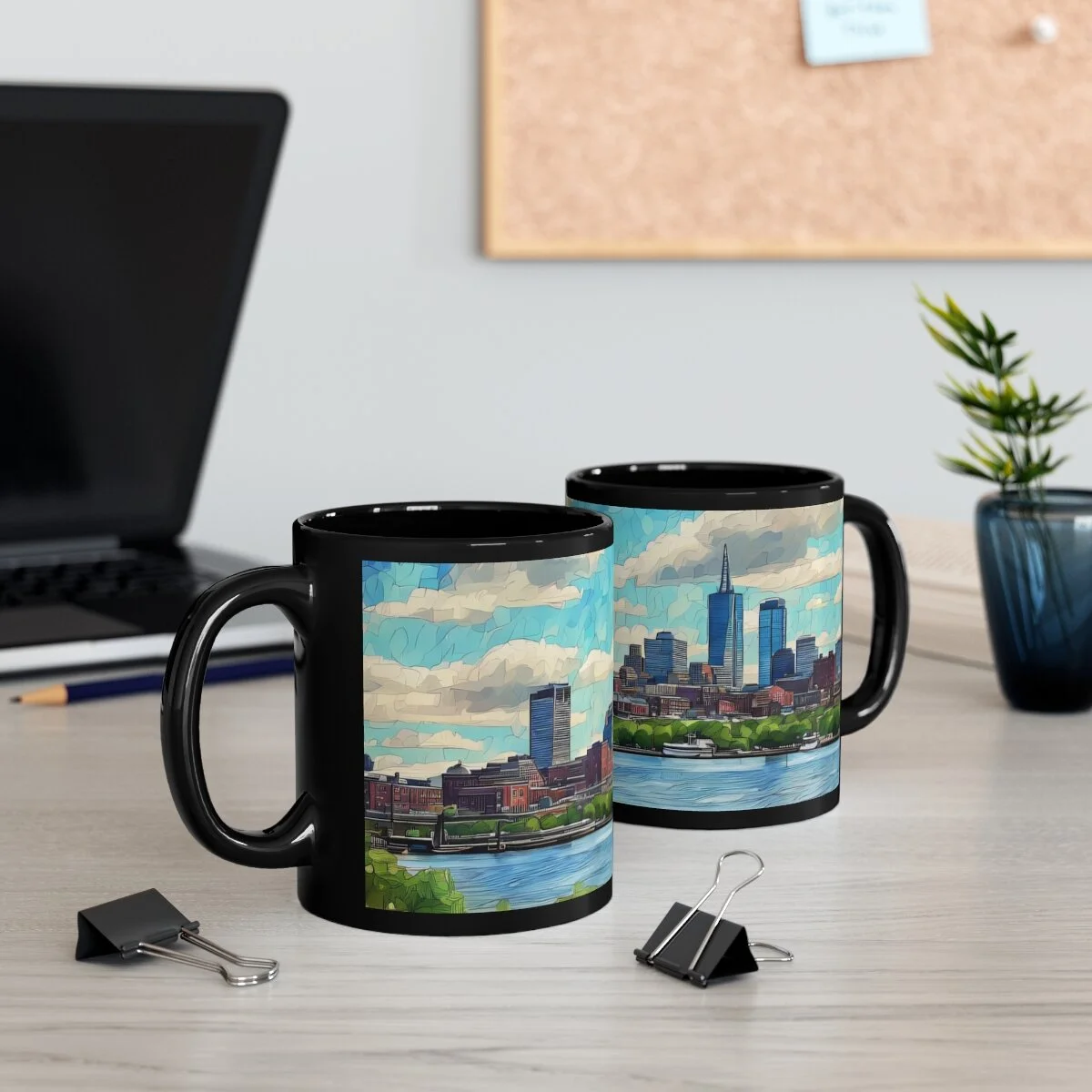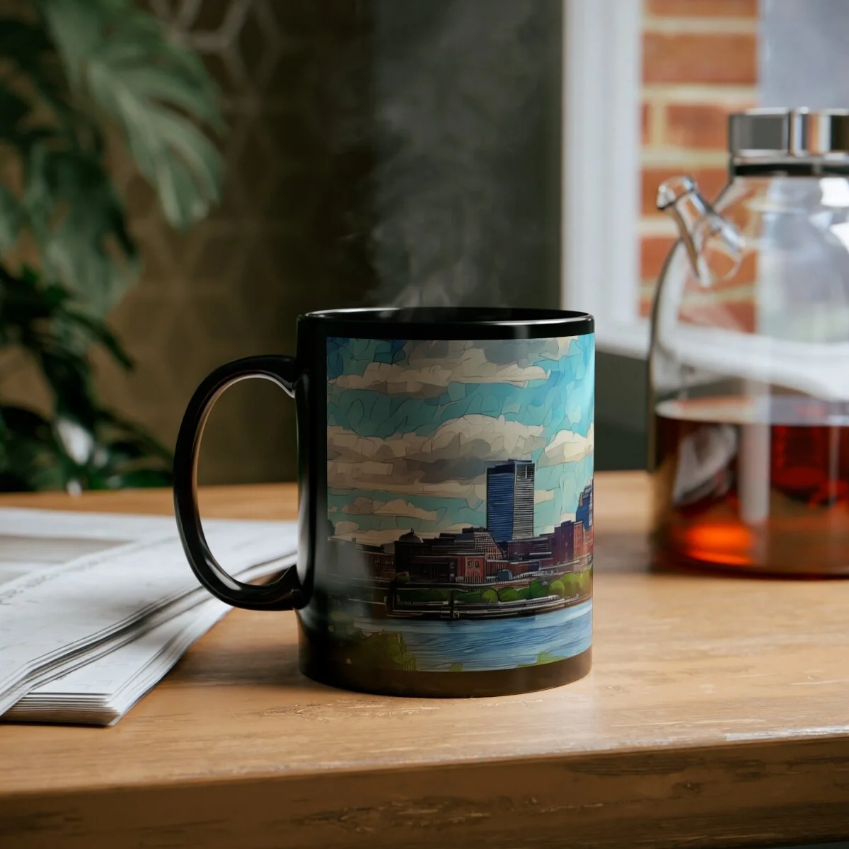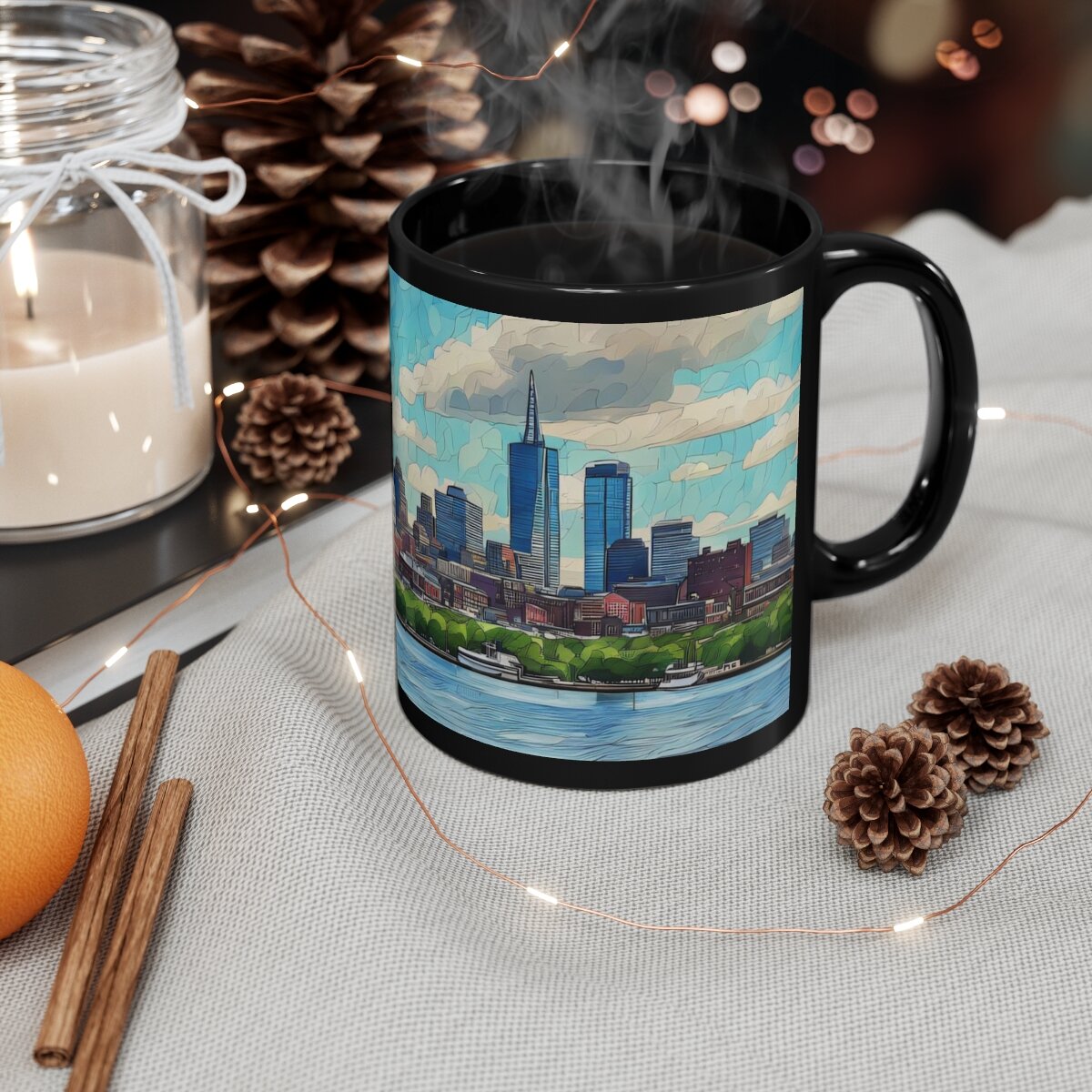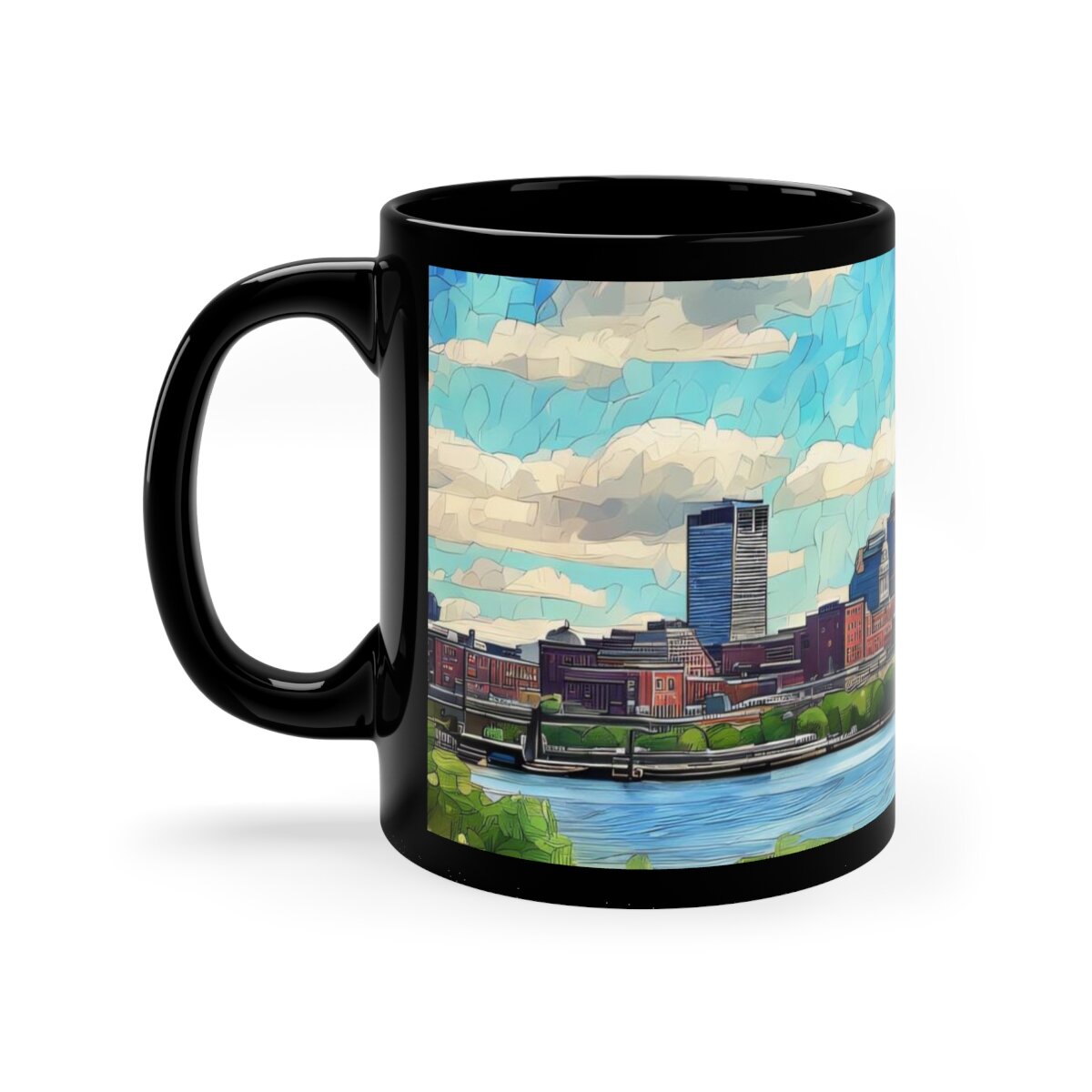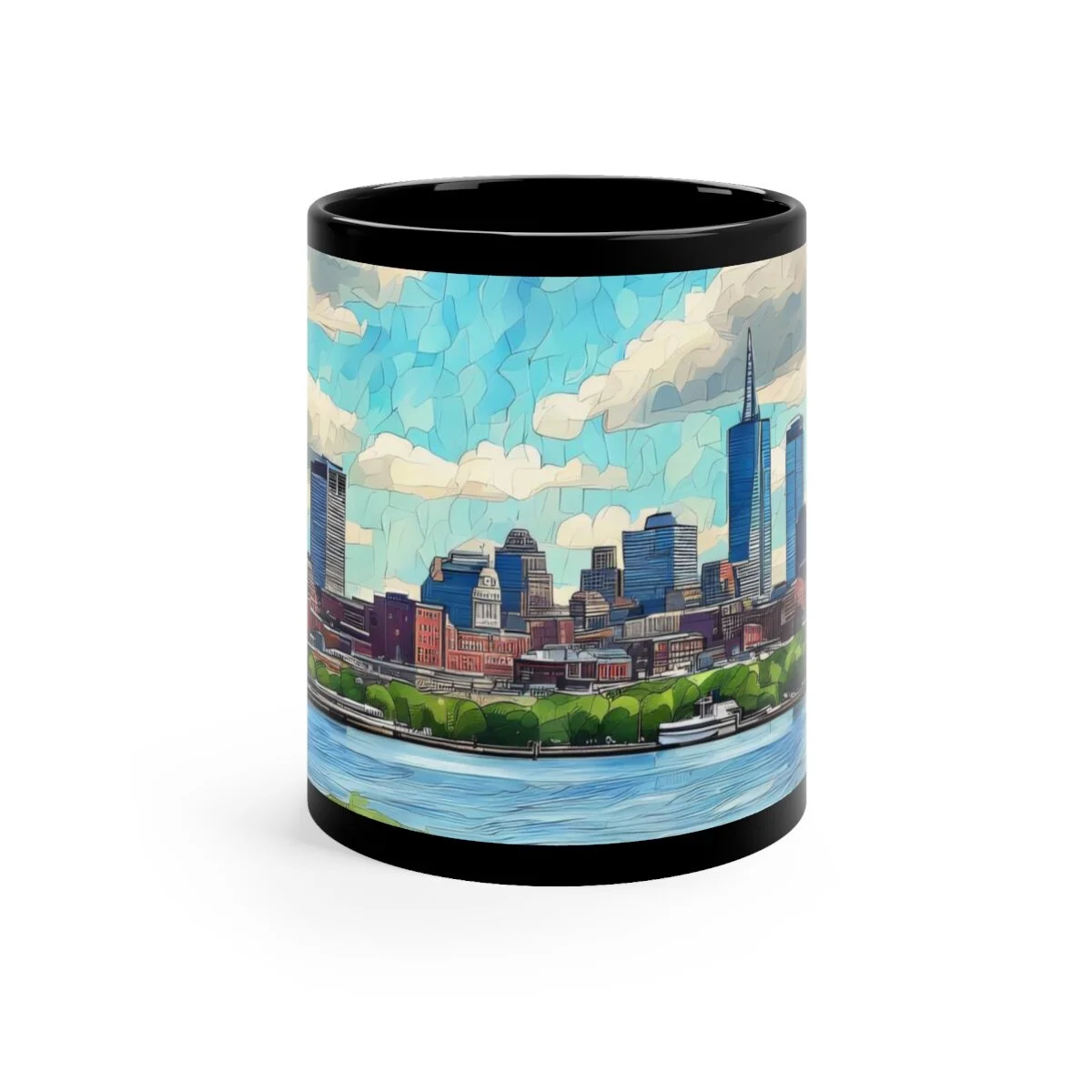 Warm your soul with a nice cuppa out of this perfectly sized black ceramic mug. While your enjoying your favorite hot beverage, enjoy the Boston Skyline watercolor image this mug was designed with. It’s BPA and lead-free, microwave and dishwasher-safe, and made of black durable ceramic in 11-ounce sizes. The high-quality sublimation printing makes this black ceramic mug the perfect gift for any true coffee, tea, or hot chocolate lover.