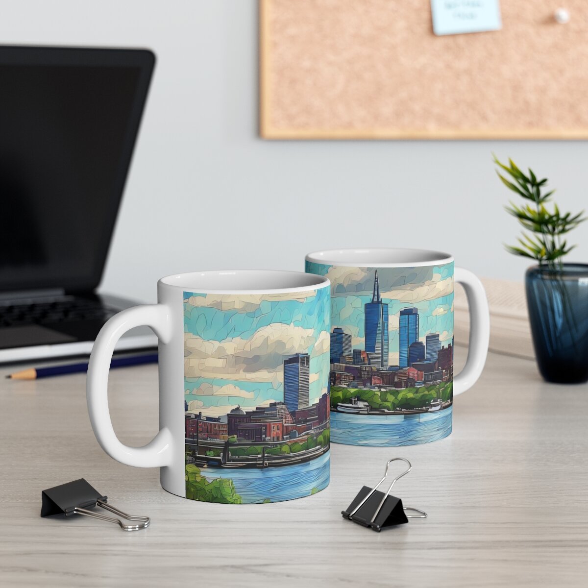 Perfect for coffee, tea and hot chocolate, this classic shape white, durable ceramic mug comes in the most popular size. While you are enjoying your coffee, tea or other hot beverage, enjoy the scenic watercolor image of the Boston skyline. This gorgeous mug is a great addition to your personal collection and it makes it an appreciated gift for every true hot beverage lover.