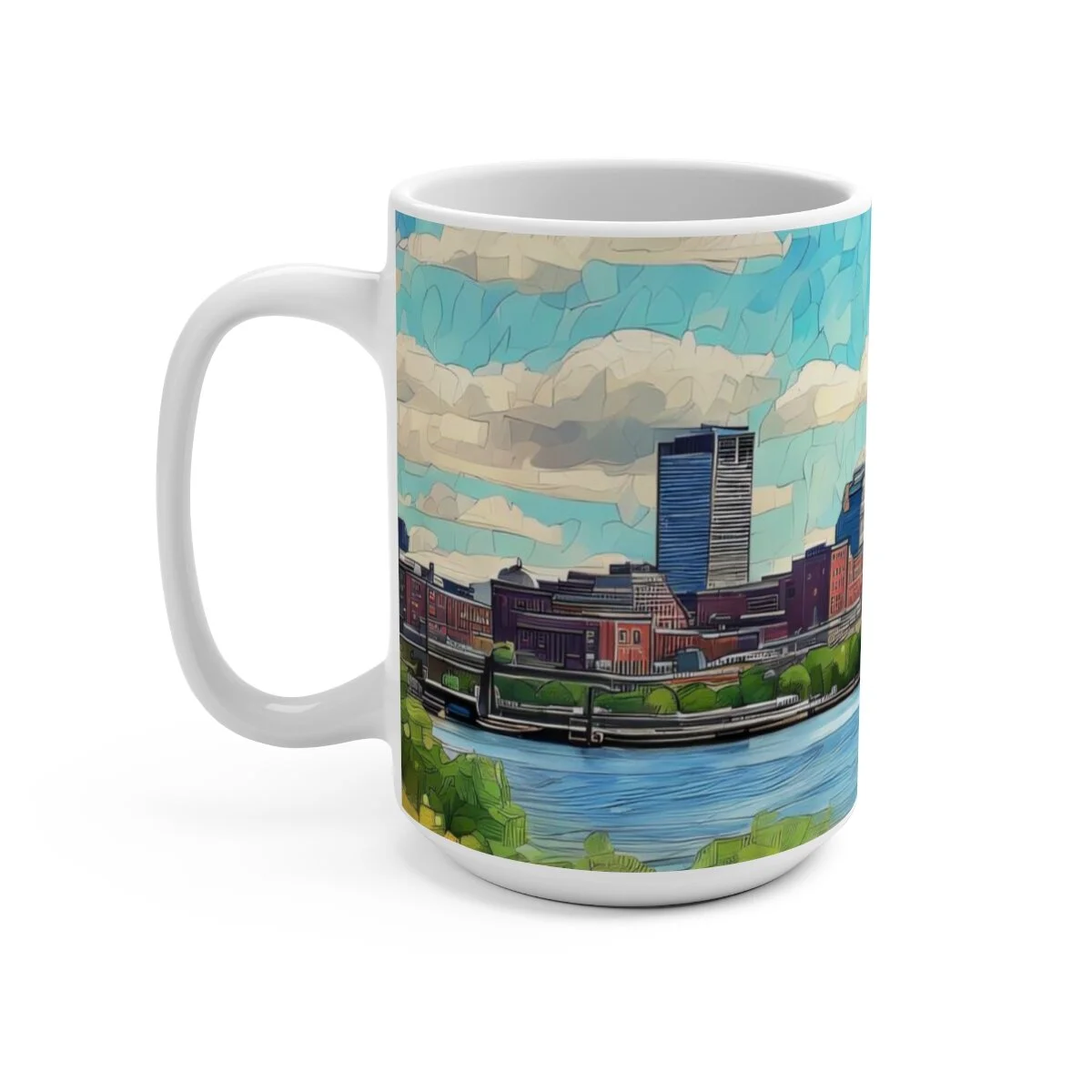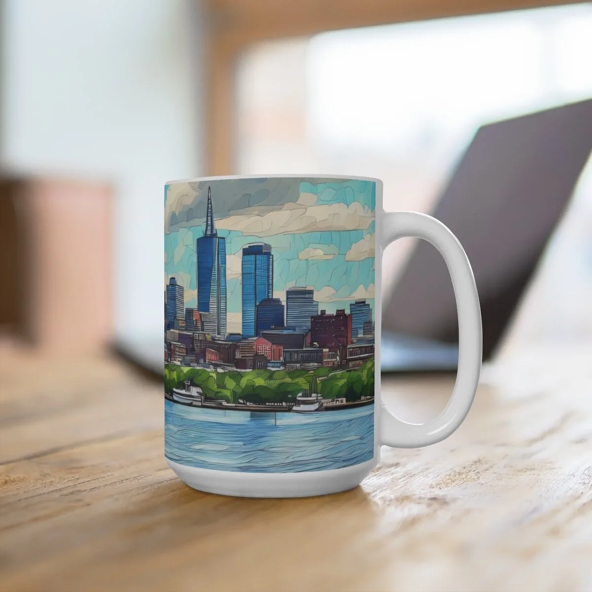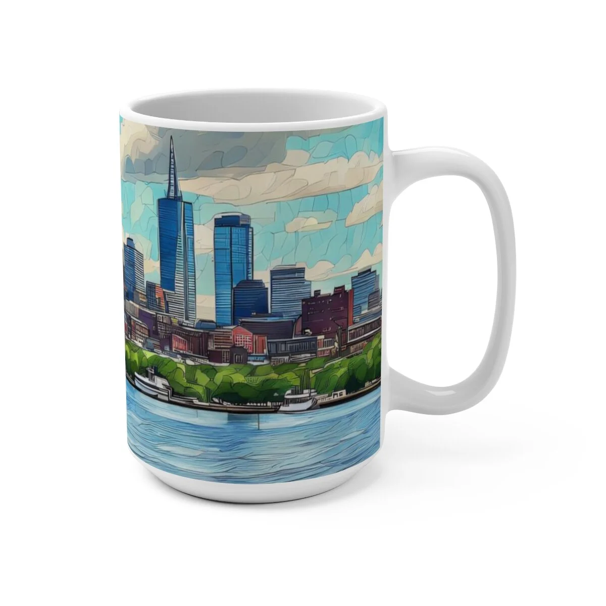 There's never too much coffee! A big size (15oz) white, durable ceramic mug is just what you need. While you are enjoying your coffee, tea or other hot beverage enjoy the scenic watercolor image of the Boston skyline in a beautiful afternoon. This gorgeous, high quality mug is a great addition to your personal collection and it makes it an appreciated gift for every true hot beverage lover.