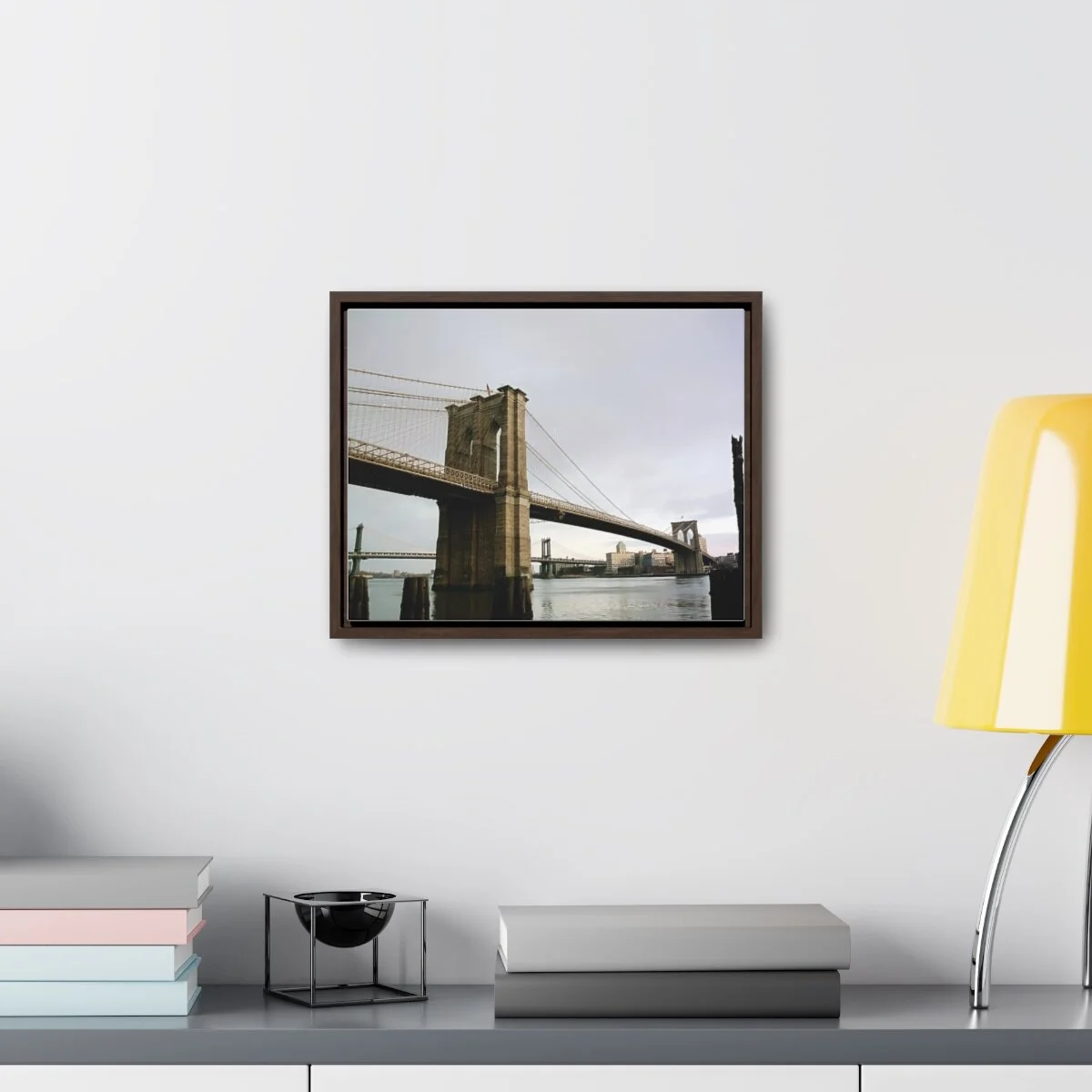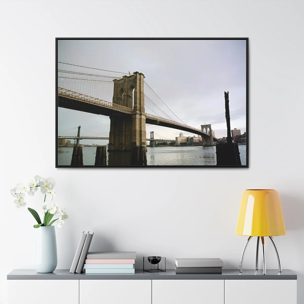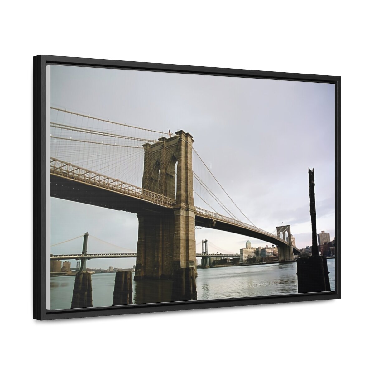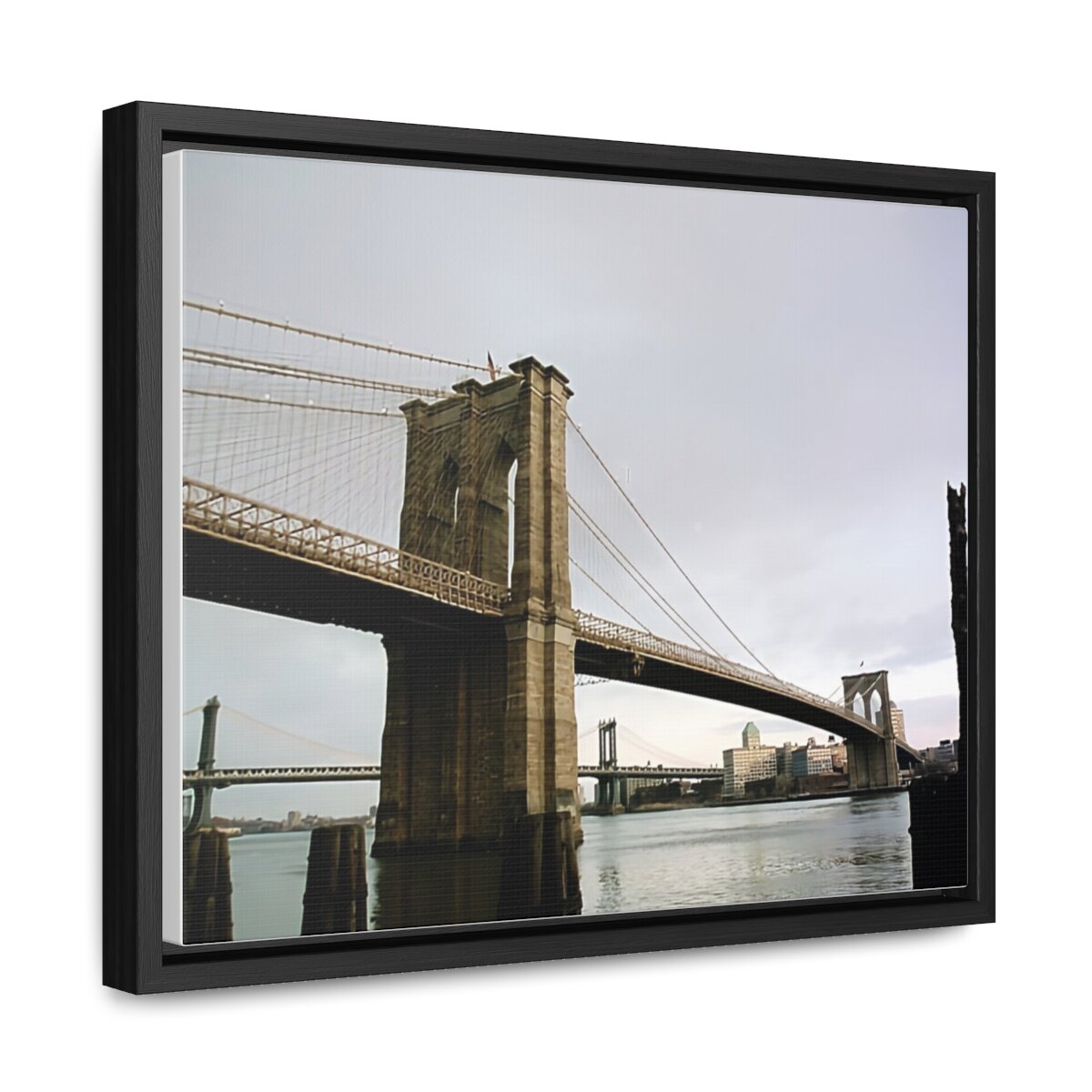 The Brooklyn Bridge was considered an engineering marvel in its time. Over a century later, it is still an iconic New York landmark. This horizontal gallery wrapped canvas print will always look as tight and flat as the day it was made. Every frame is built with a solid face to support the canvas and prevent deforming. Available in multiple sizes, comes in walnut and black frame options.