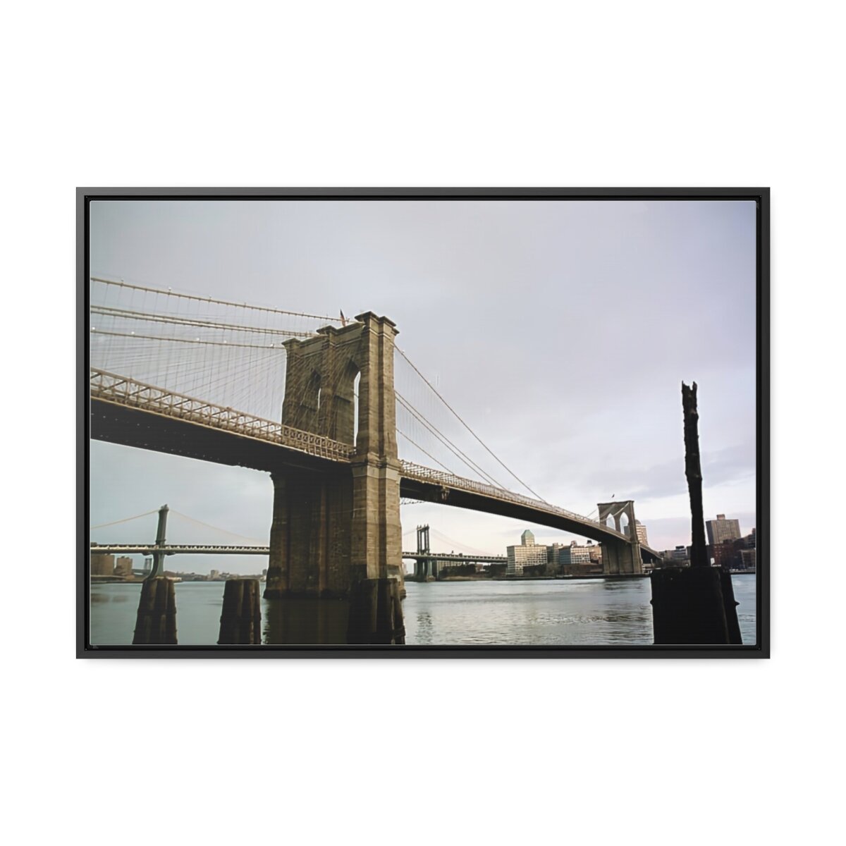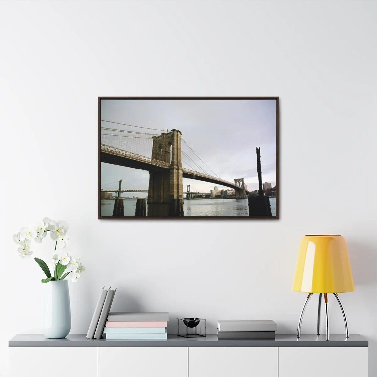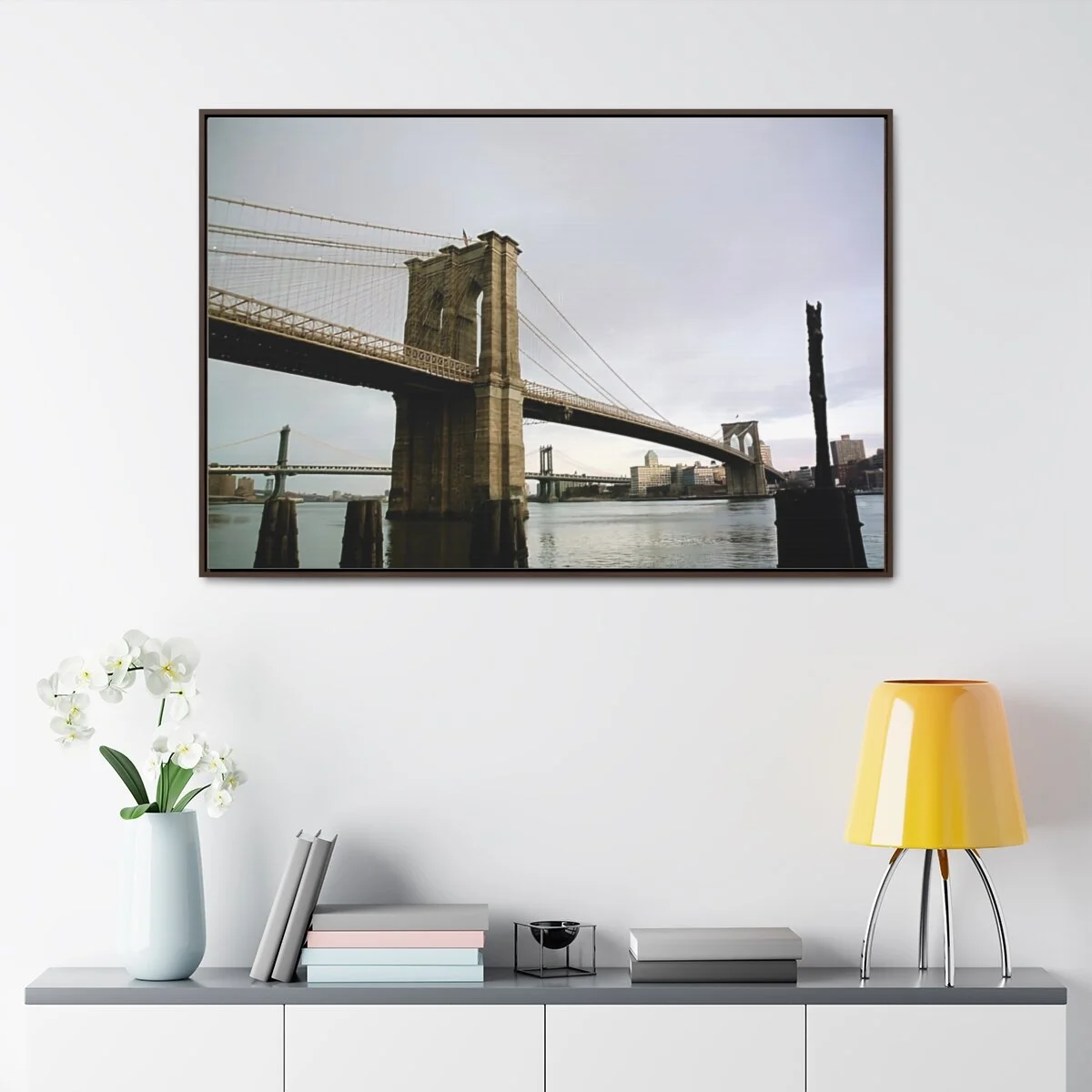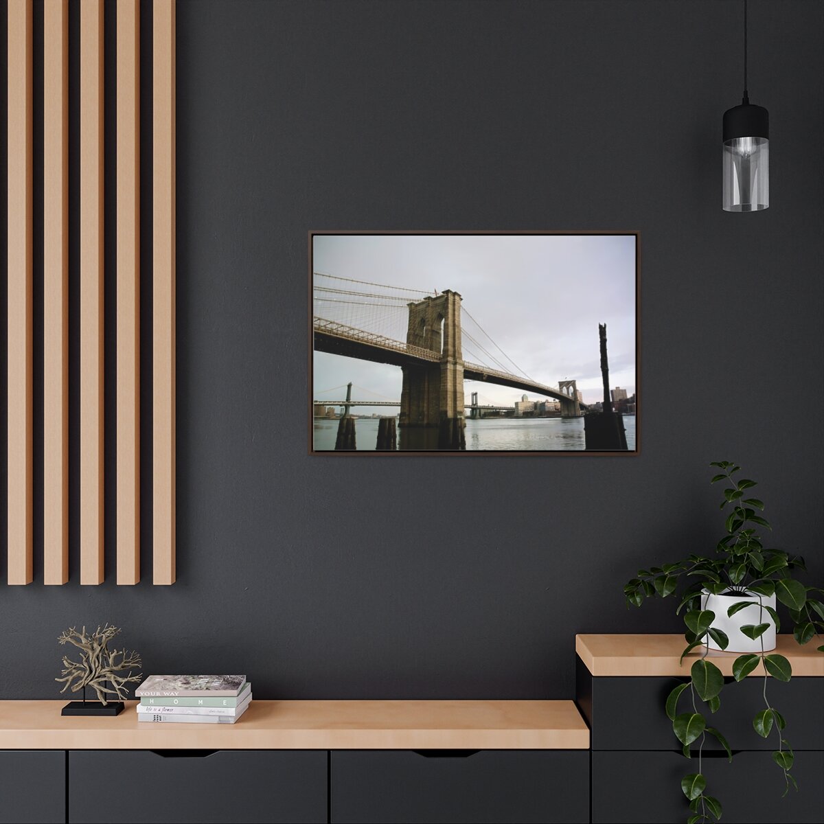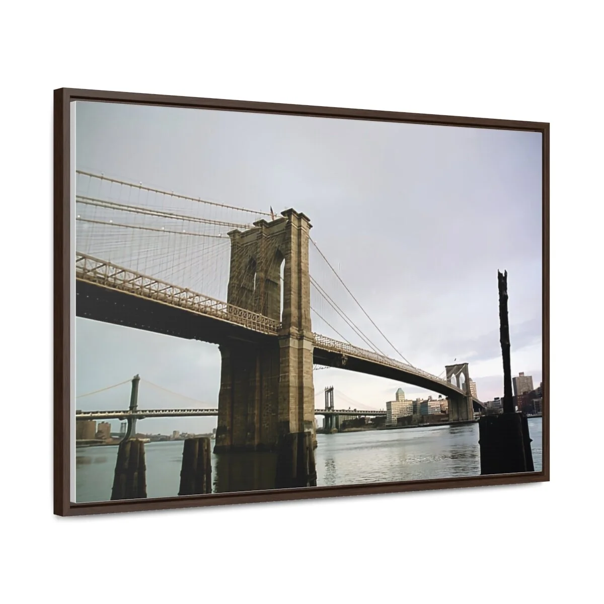 The Brooklyn Bridge was considered an engineering marvel in its time. Over a century later, it is still an iconic New York landmark. This horizontal gallery wrapped canvas print will always look as tight and flat as the day it was made. Every frame is built with a solid face to support the canvas and prevent deforming. Available in multiple sizes, comes in walnut and black frame options.