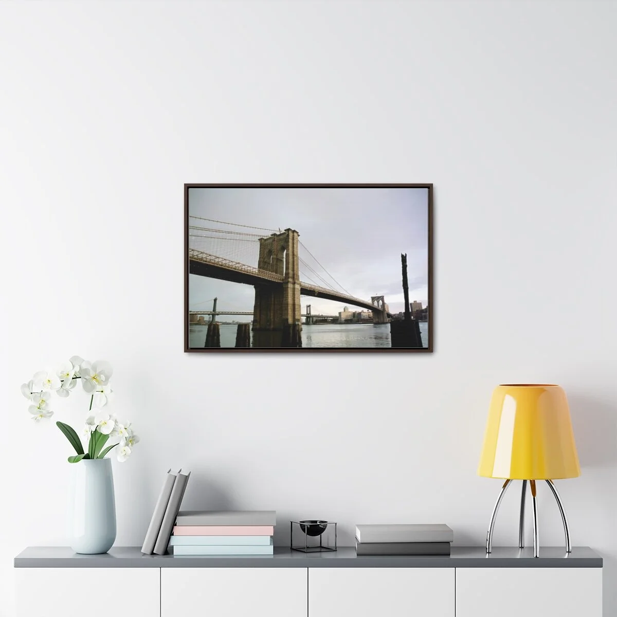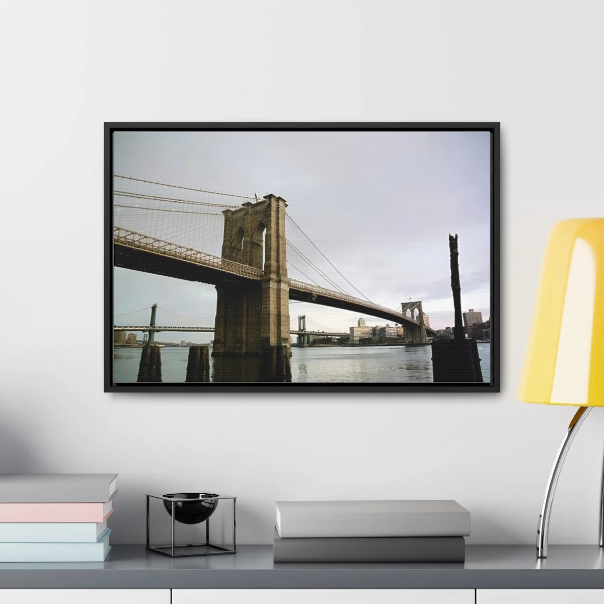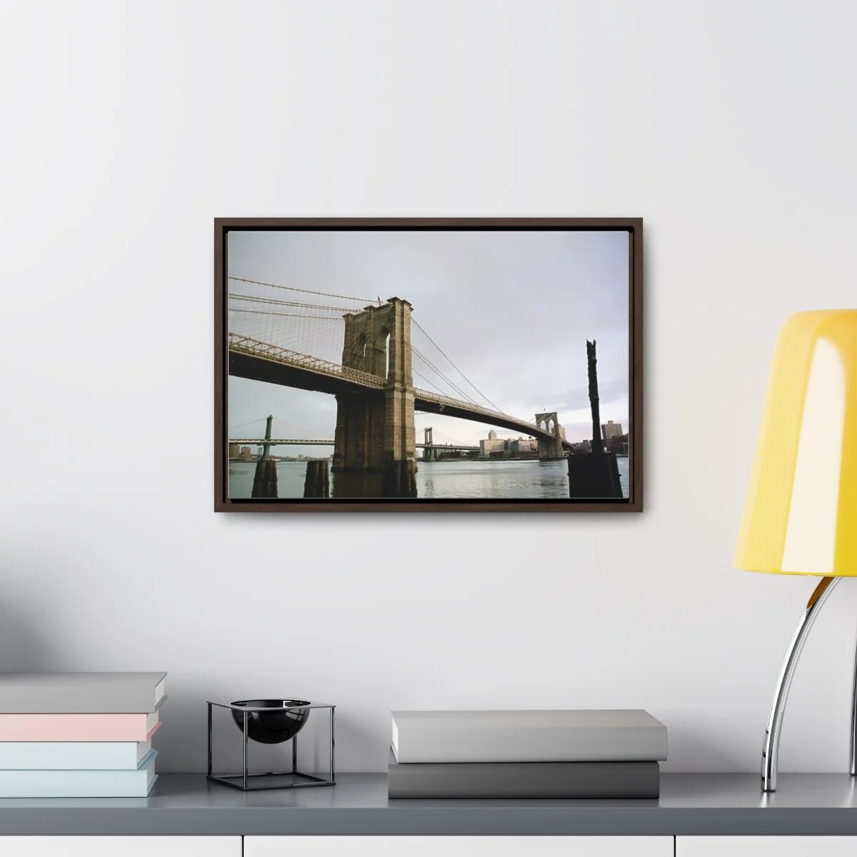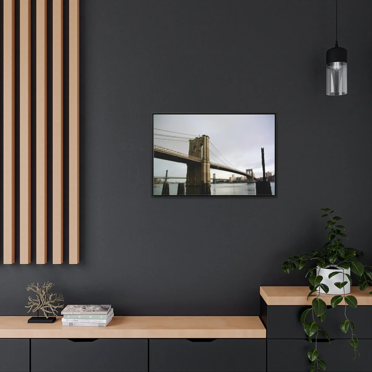 The Brooklyn Bridge was considered an engineering marvel in its time. Over a century later, it is still an iconic New York landmark. This horizontal gallery wrapped canvas print will always look as tight and flat as the day it was made. Every frame is built with a solid face to support the canvas and prevent deforming. Available in multiple sizes, comes in walnut and black frame options.