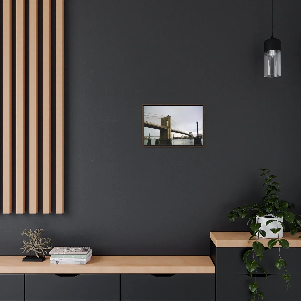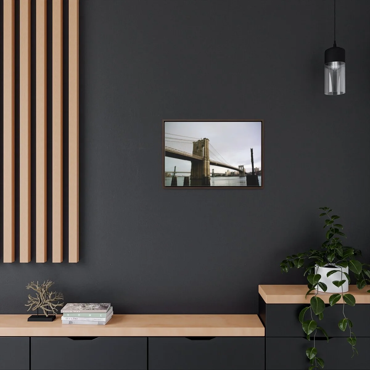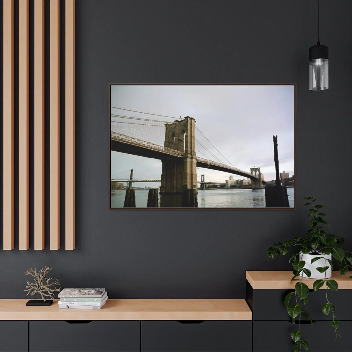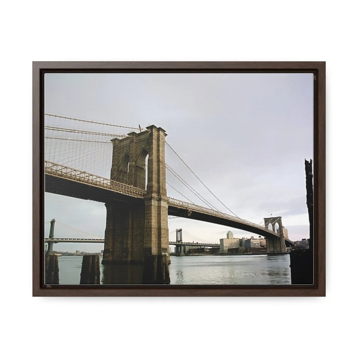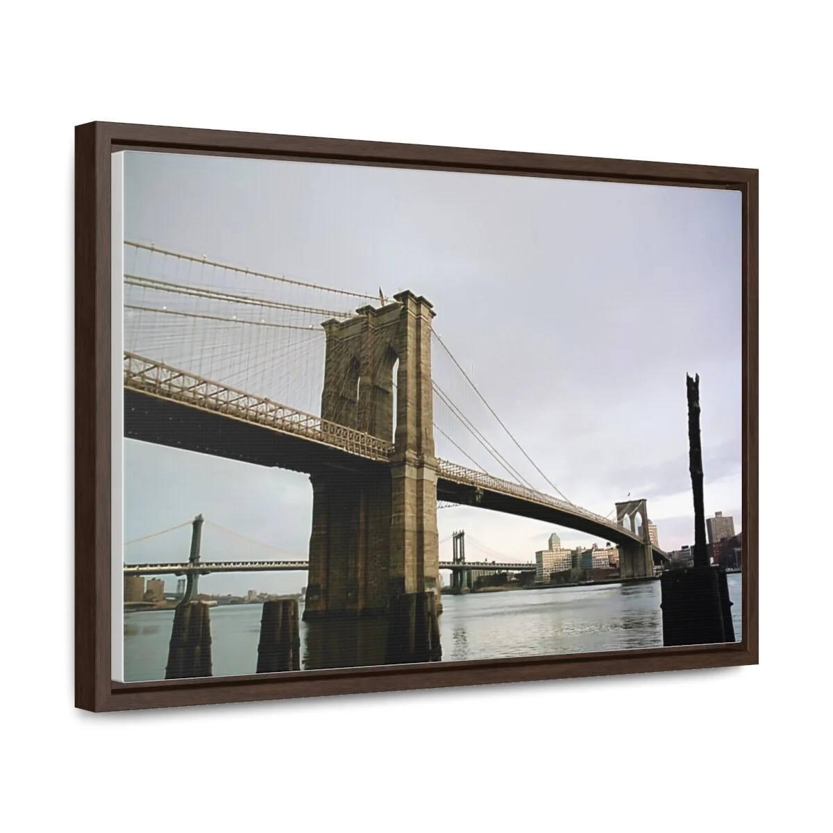 The Brooklyn Bridge was considered an engineering marvel in its time. Over a century later, it is still an iconic New York landmark. This horizontal gallery wrapped canvas print will always look as tight and flat as the day it was made. Every frame is built with a solid face to support the canvas and prevent deforming. Available in multiple sizes, comes in walnut and black frame options.