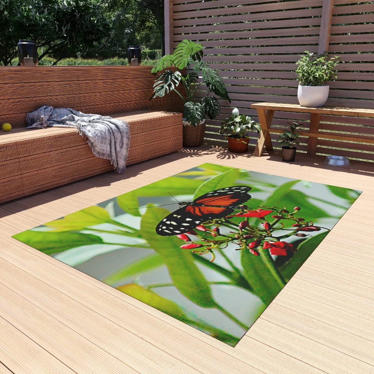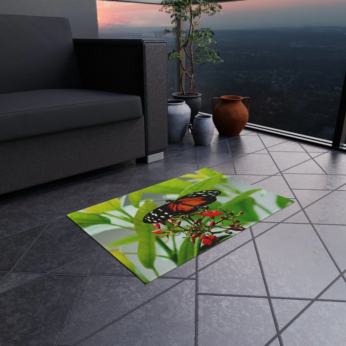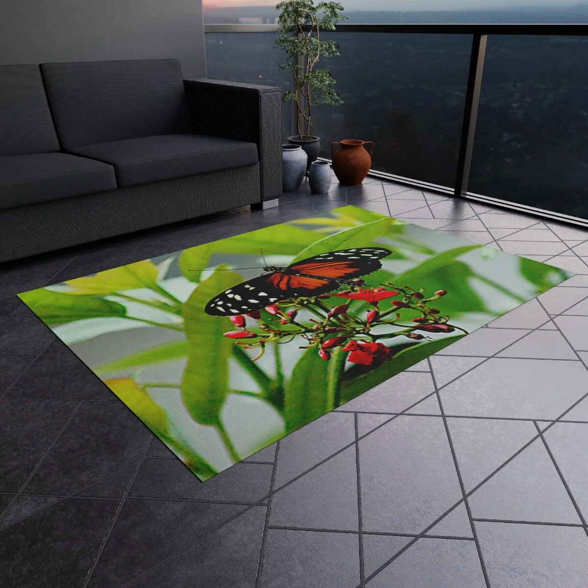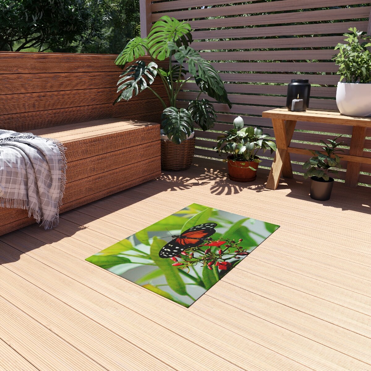 The Butterflies on Berries Outdoor Rug is a terrific way to spice up the decor of an outdoor area. These non-slip outdoor rugs bring alfresco chilling to a whole new level of comfort. These rugs come in many different sizes to fit any patio or porch. Made from polyester chenille fabric— they're very durable, breathable, and dry quickly.