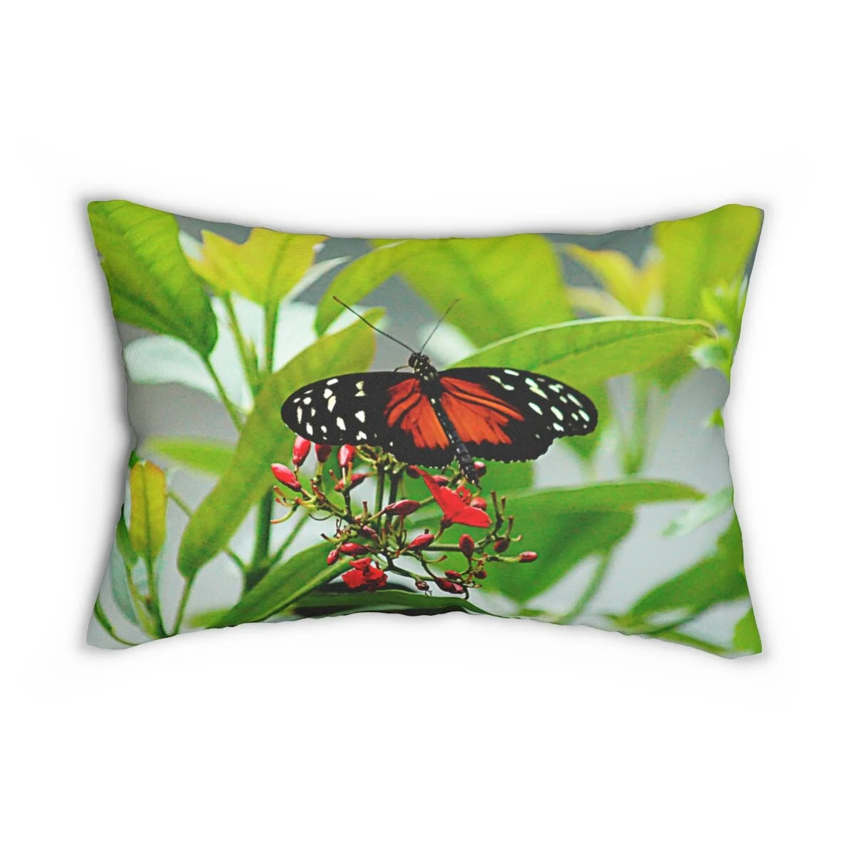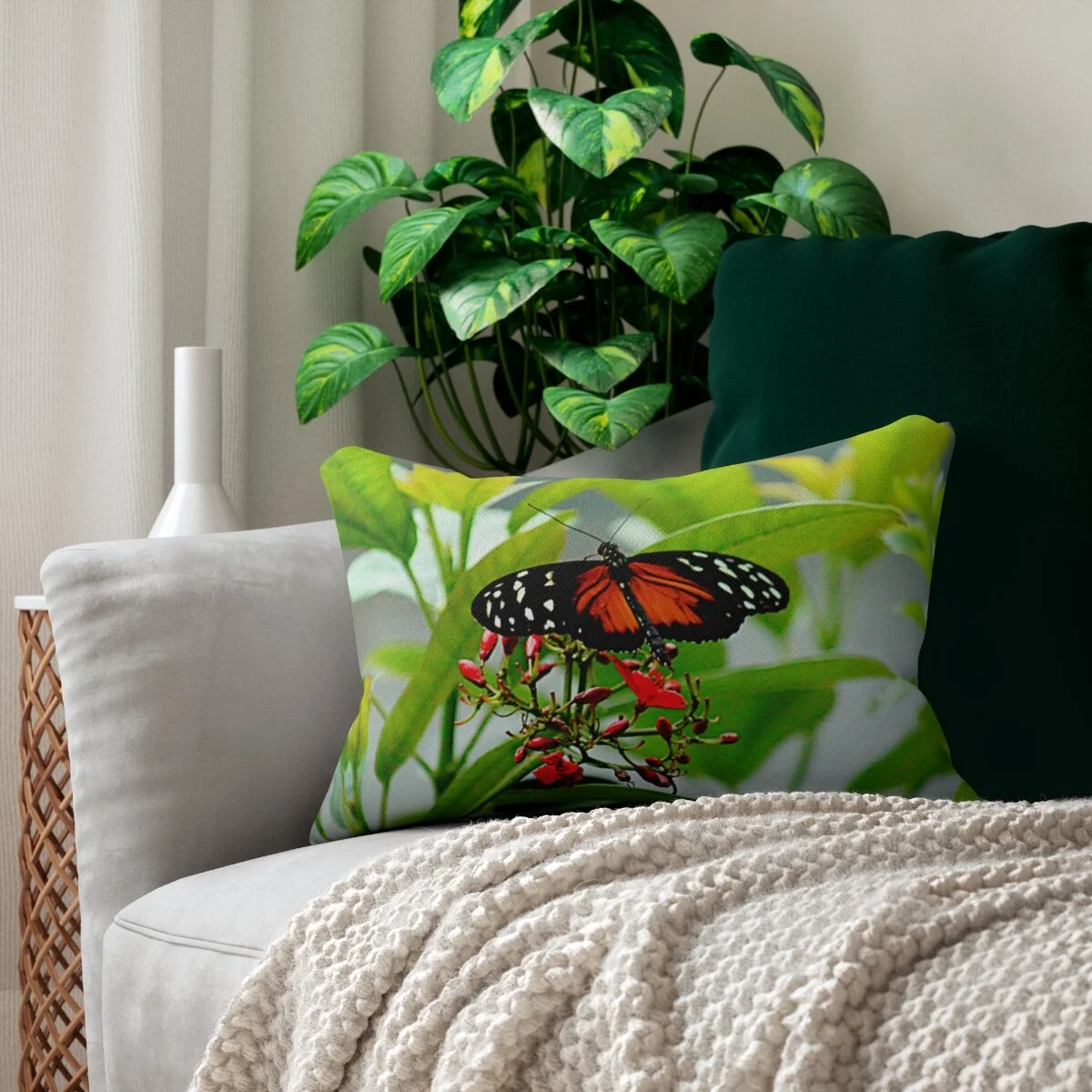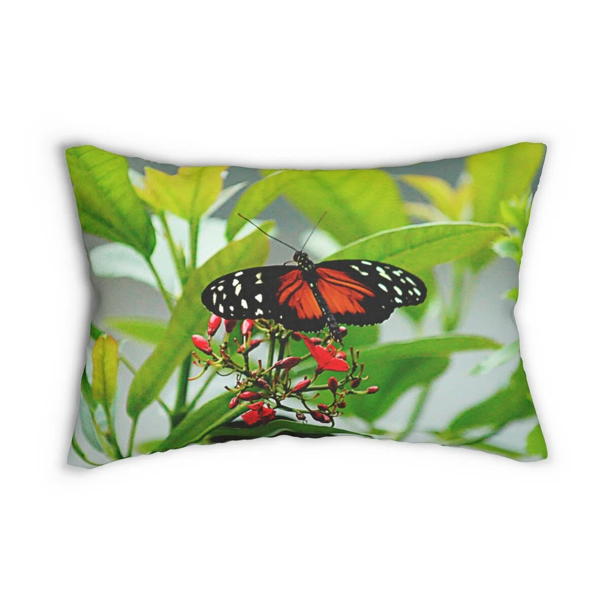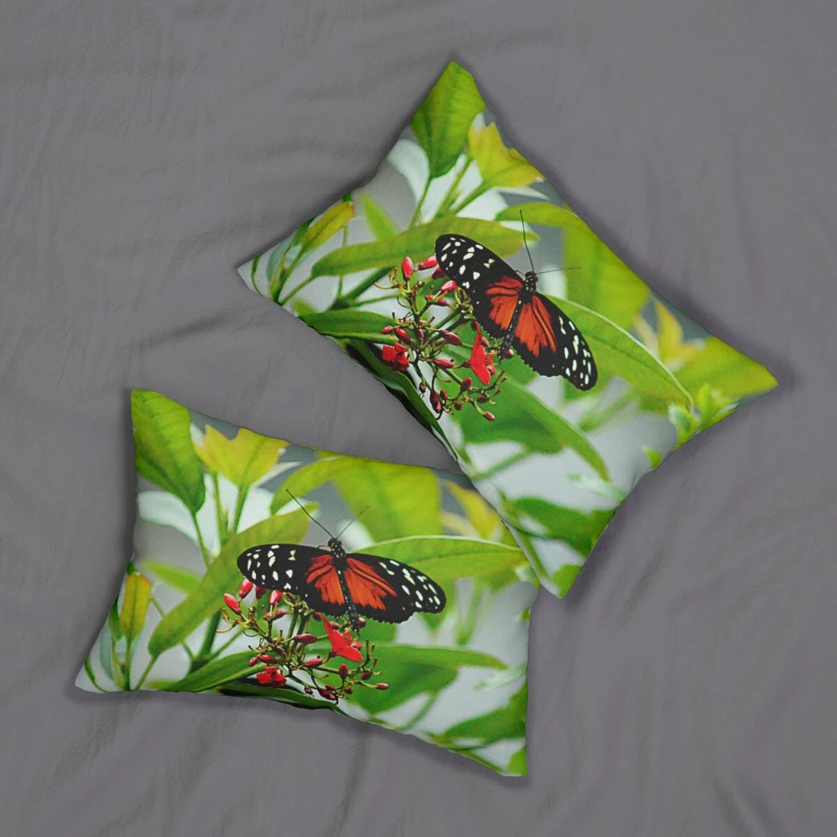 The Butterfly on Berries Spun Polyester Lumbar Pillow is a unique and distinct accessory for any chair, sofa, couch or bed. Add this beautiful spun-polyester lumbar pillow to your home decor pieces today. It comes with a stuffing pillow included. The casing is made of a spun polyester fabric that is inherently mildew and water-resistant. You can place your design on both sides or have a different design on each side. It has a hidden beige zipper to maintain a finished and stylish look.
