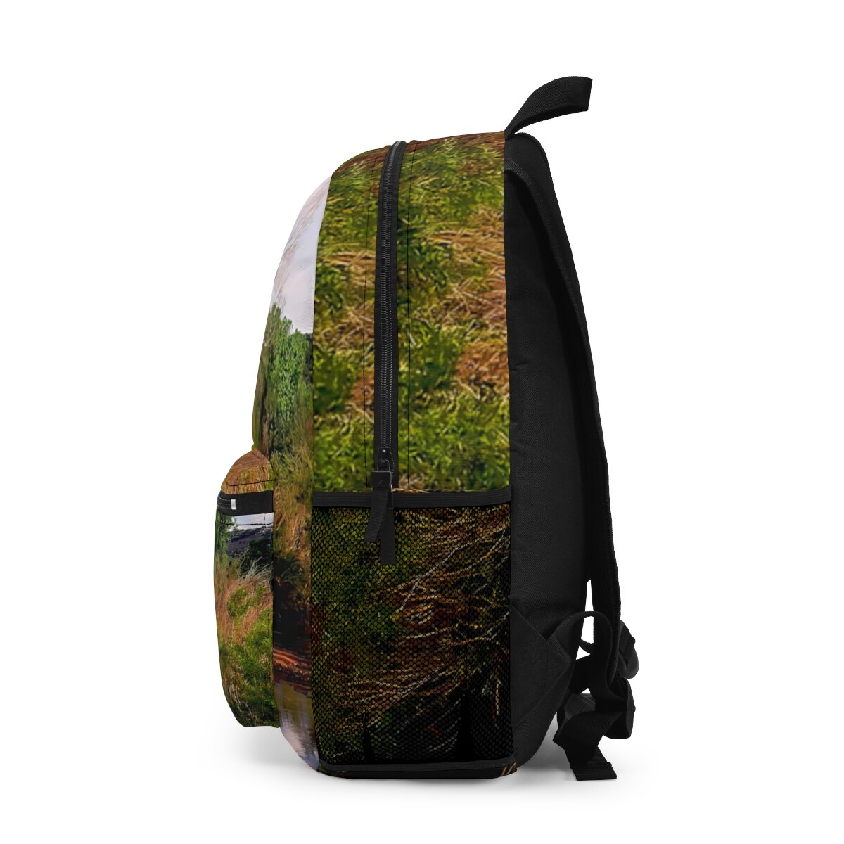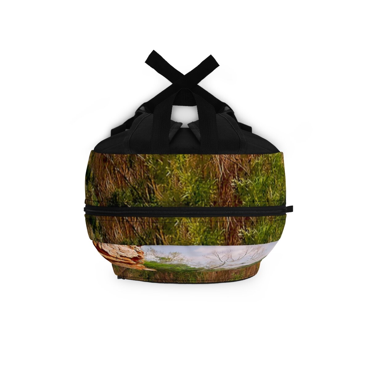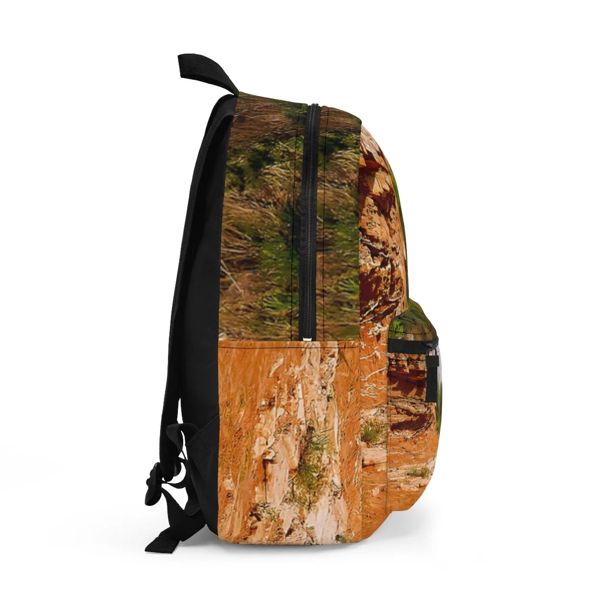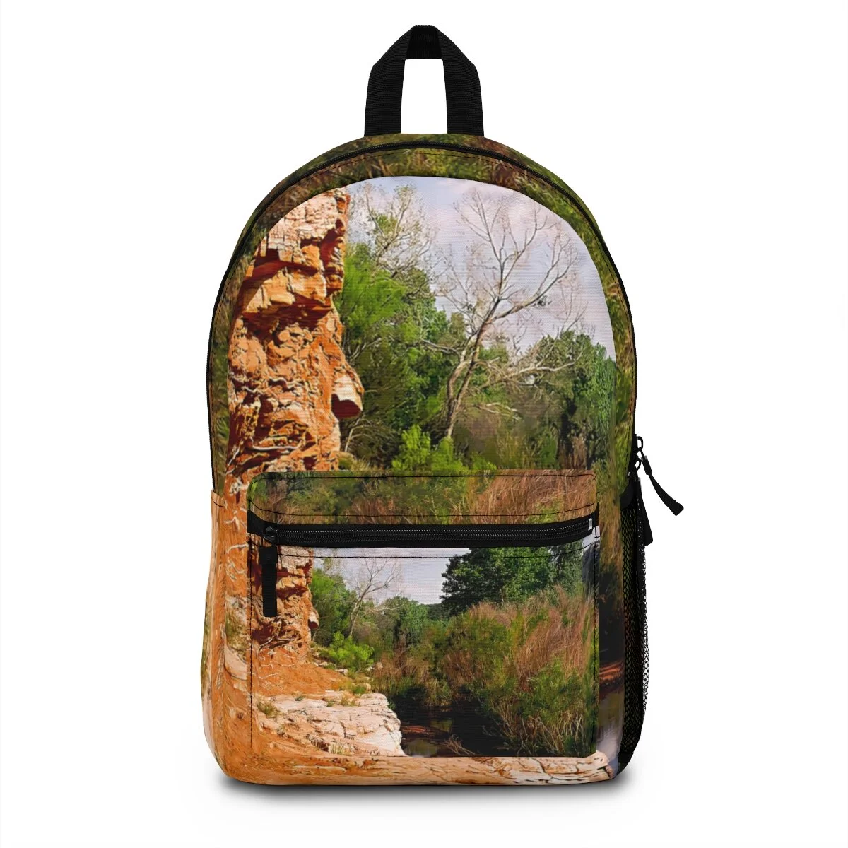 The Creek At Palo Duro Canyon Backpack is a stunning blend of canyon terrain, and the vegetation surrounding a creek. The design is from a photo taken at Palo Duro Canyon, in the Texas Panhandle. This is a totally unique accessory for your ensemble. This bag is made from spun polyester and weights 1.3 lbs, just enough to be light, strong and long-lasting. Grab it, stow it, throw it onto the seat next to you, this backpack can take it, and so will you, wherever you go!