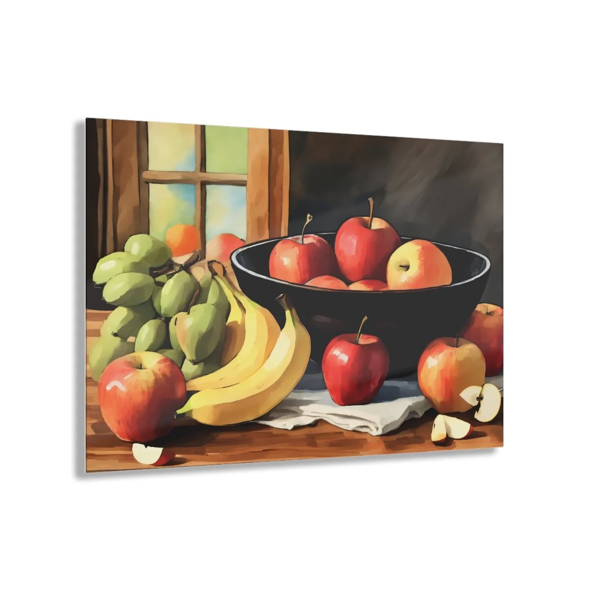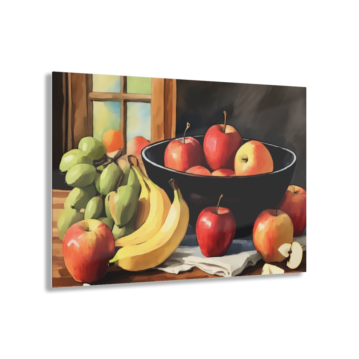 The Fruit Bowl watercolor image has a timeless and class feel. Made to seem like your photos or art is printed on a glass surface, these acrylic photo prints never fail to dazzle. Your images are second-surface printed directly on a 1/4" acrylic panel for a stunning result. Each acrylic print comes ready to hang, and floats 1.5" off the wall.