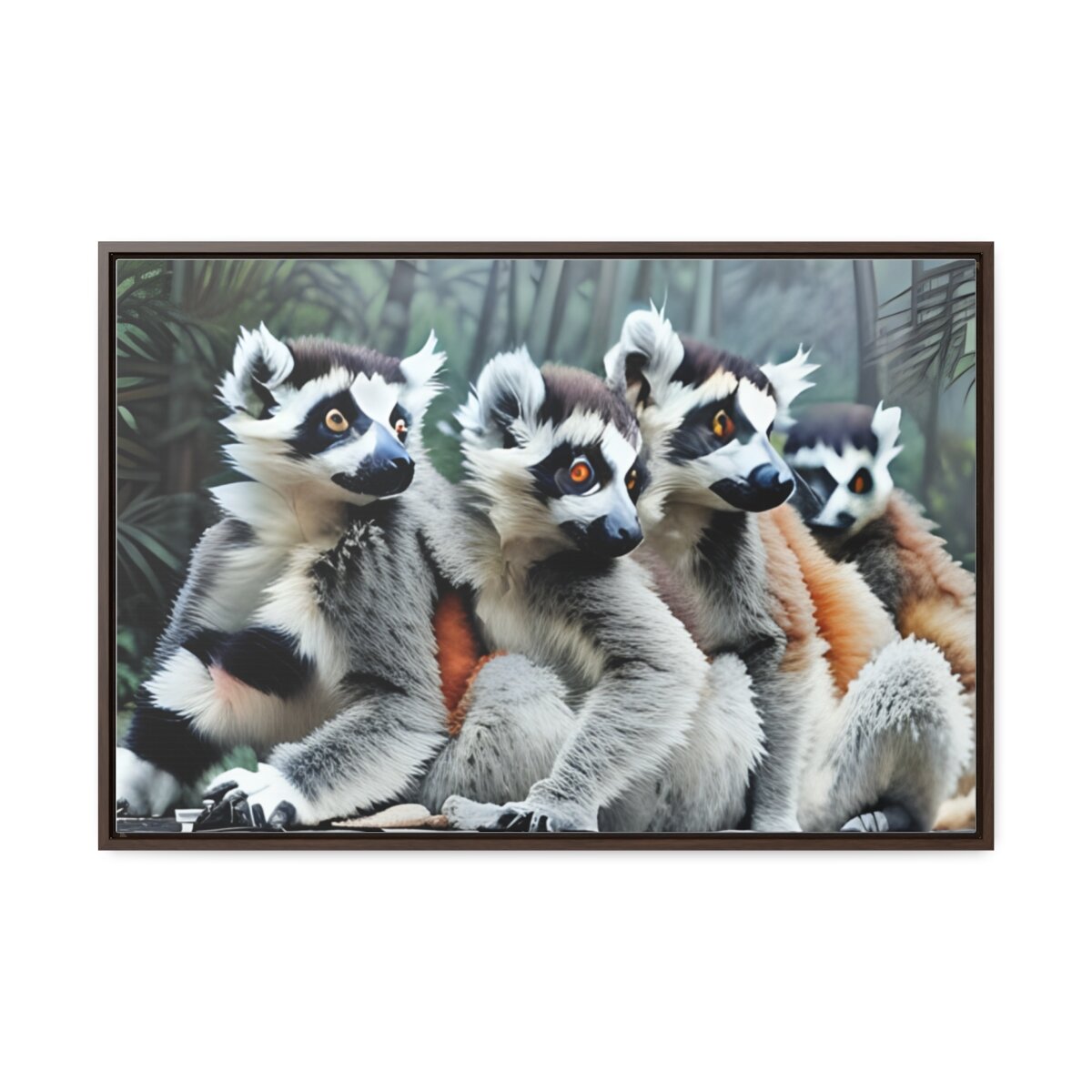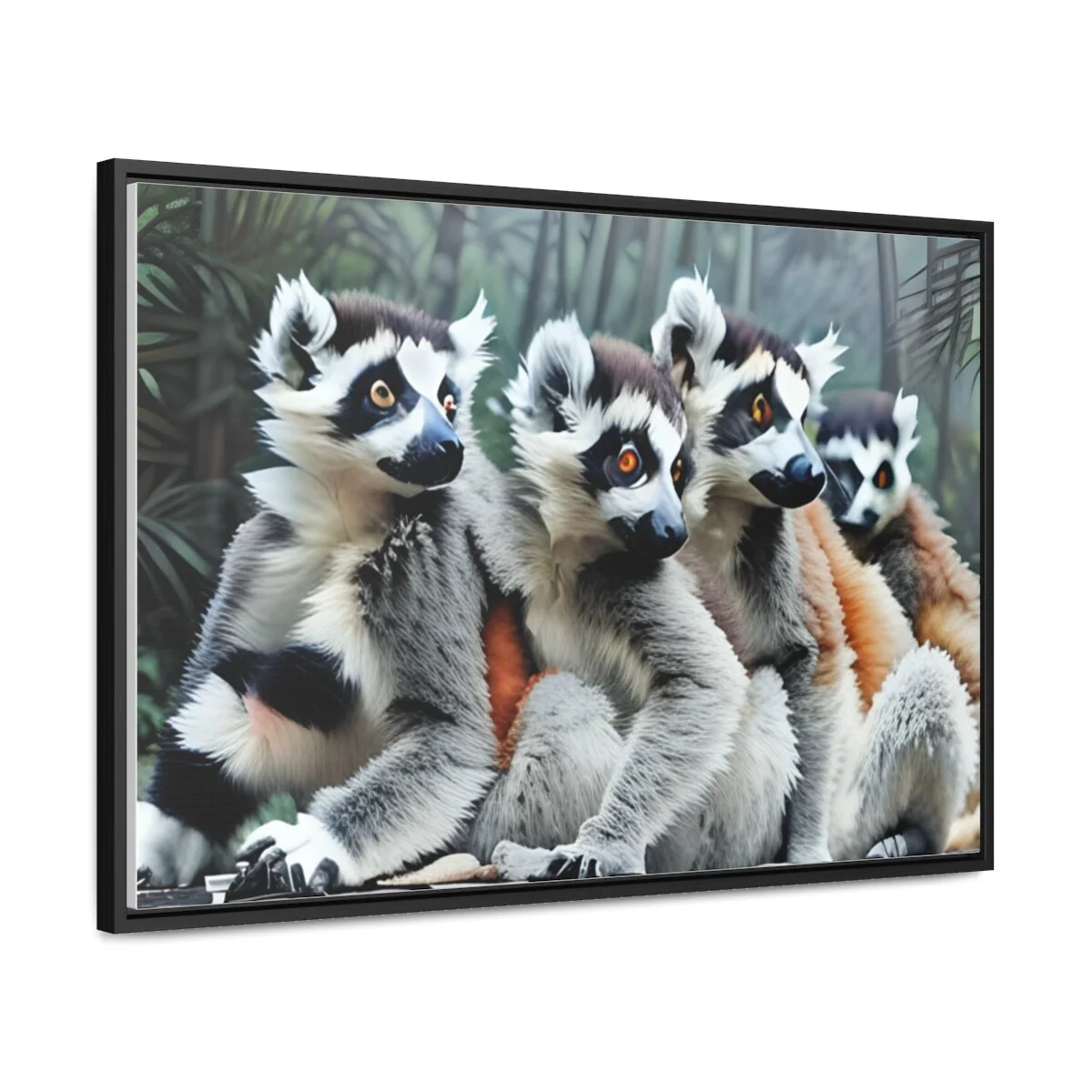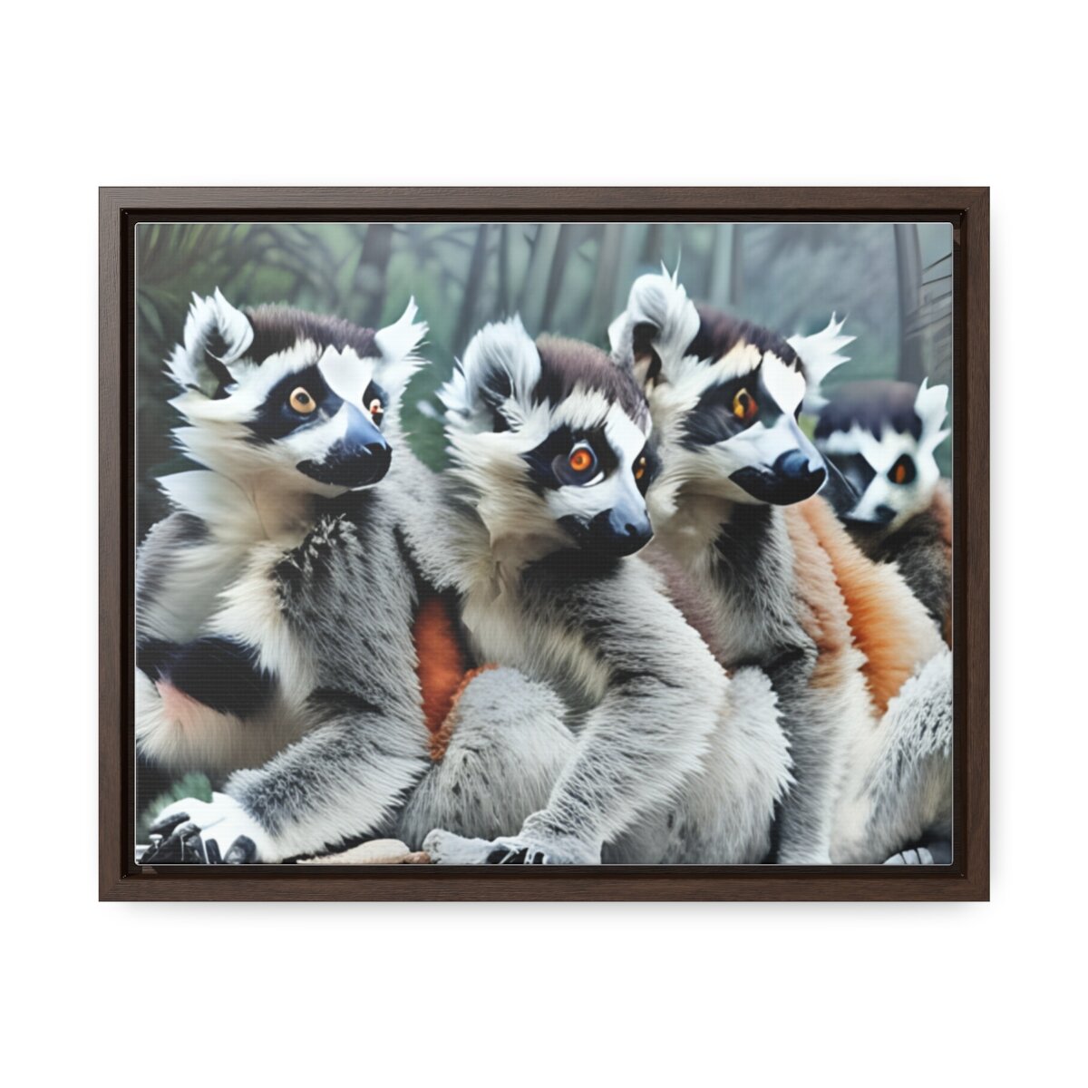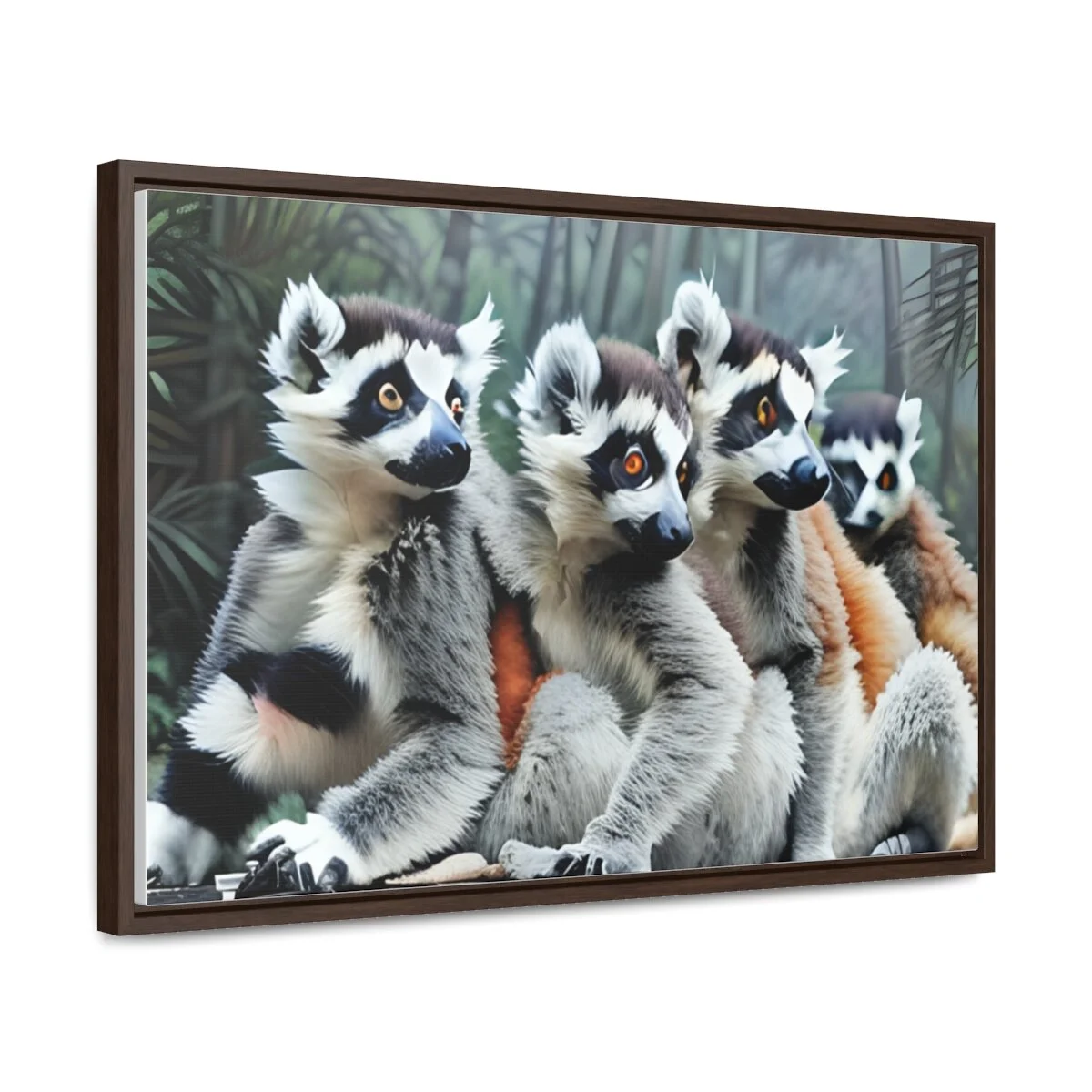 The Lemur Gang watercolor image will give any room a bit whimsical flair, and style. It's not something you are going to see every day. This horizontal gallery wrapped canvas print will always look as tight and flat as the day it was made. Every frame is built with a solid face to support the canvas and prevent deforming. Available in multiple sizes, comes in walnut and black frame options.