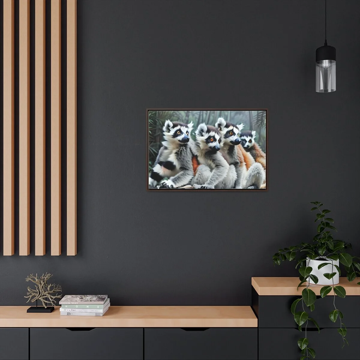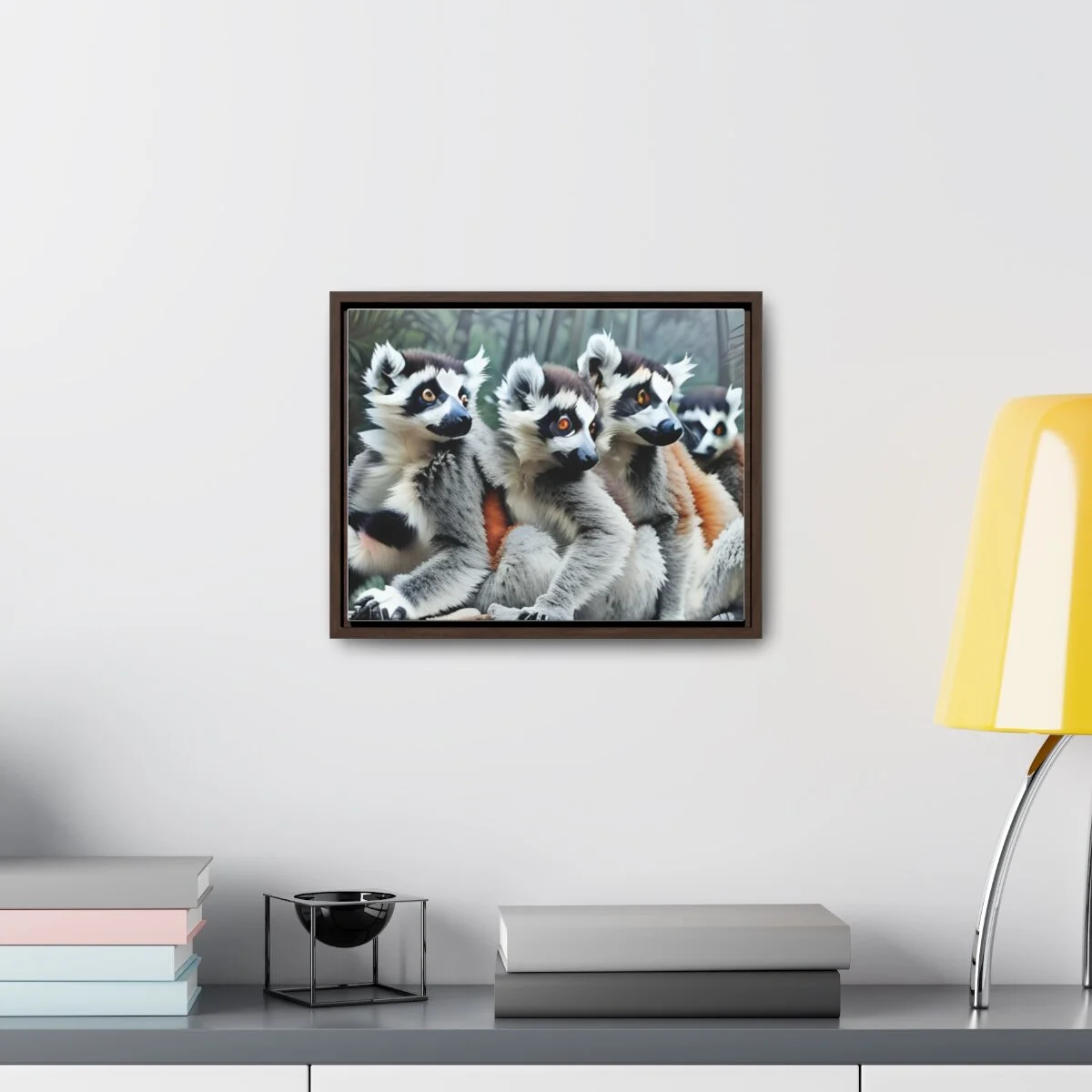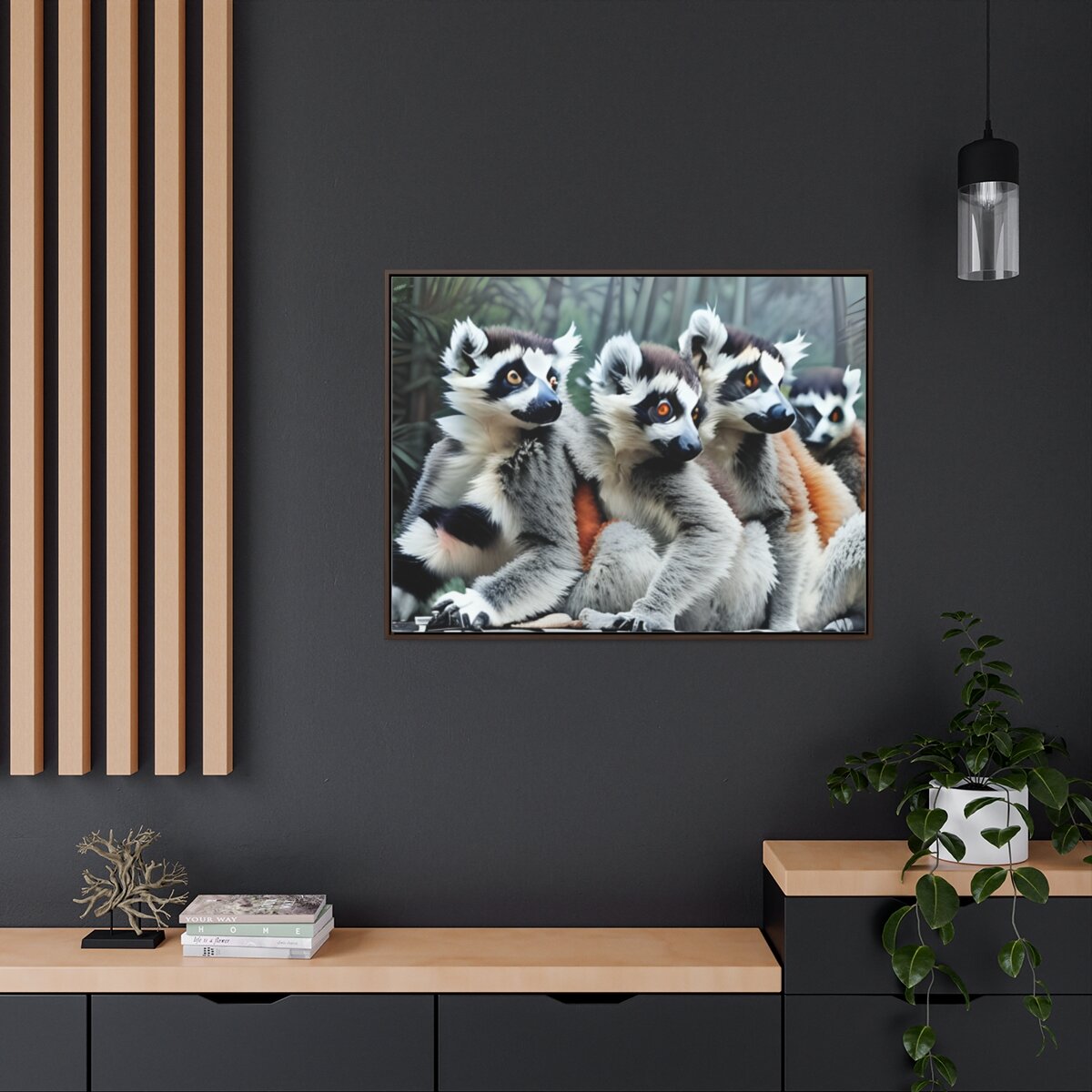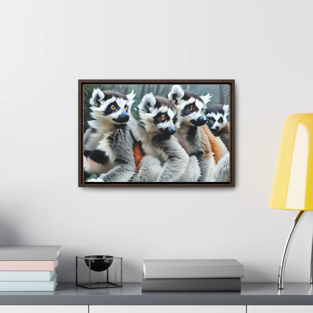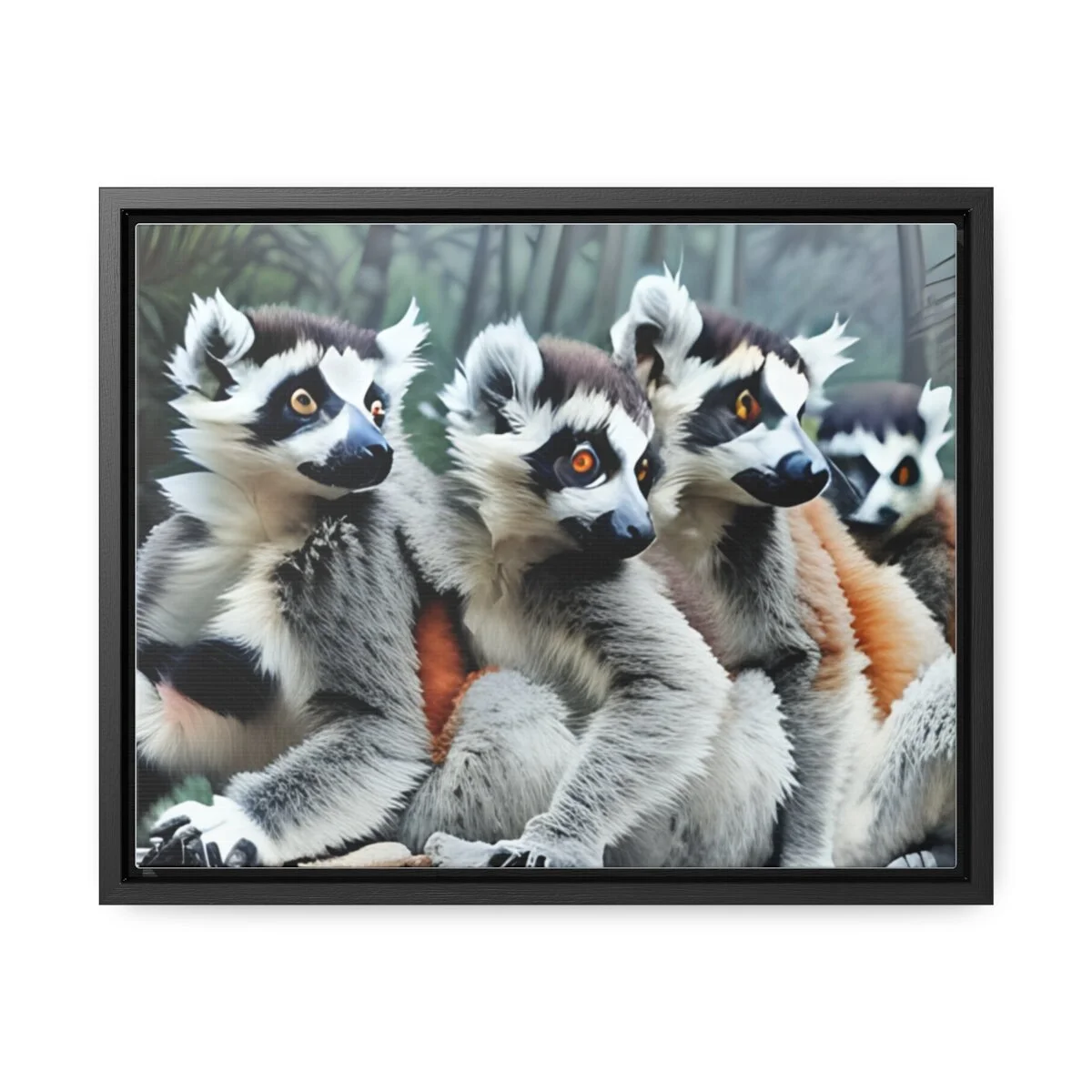 The Lemur Gang watercolor image will give any room a bit whimsical flair, and style. It's not something you are going to see every day. This horizontal gallery wrapped canvas print will always look as tight and flat as the day it was made. Every frame is built with a solid face to support the canvas and prevent deforming. Available in multiple sizes, comes in walnut and black frame options.