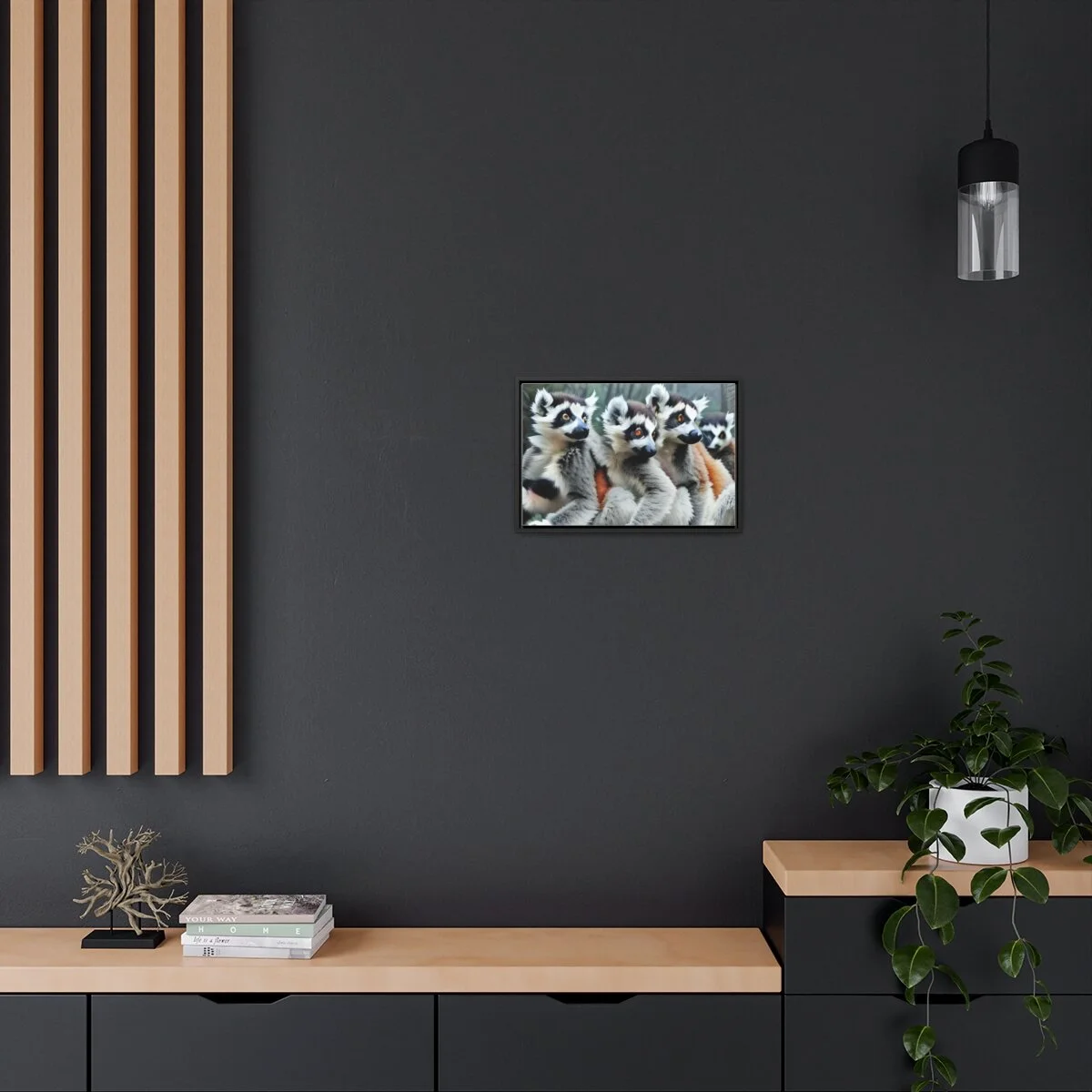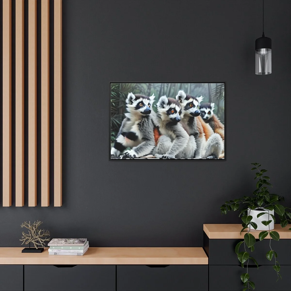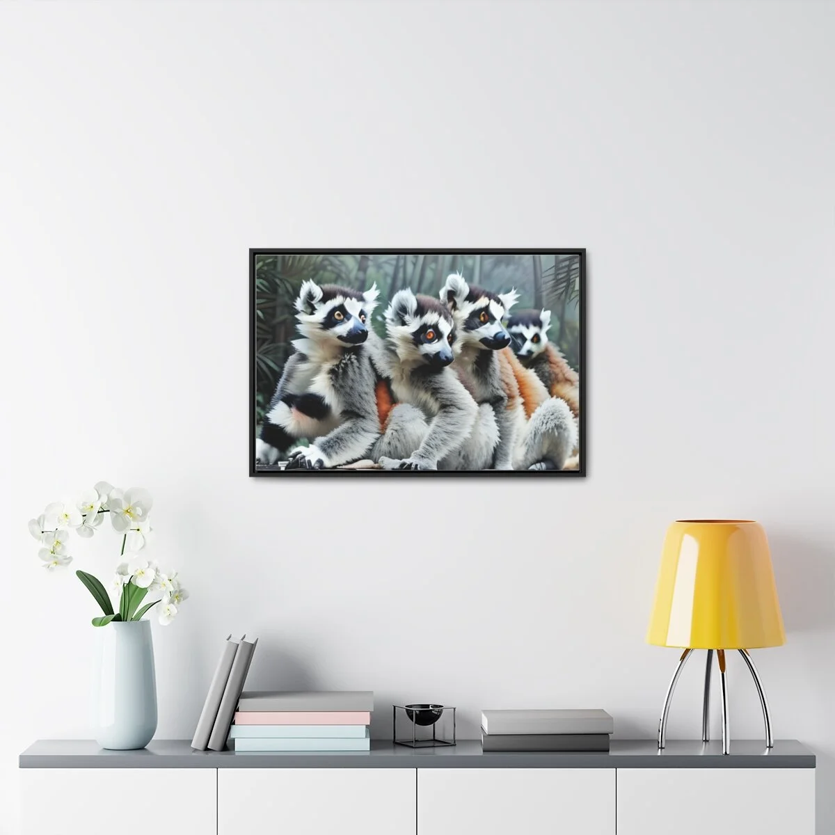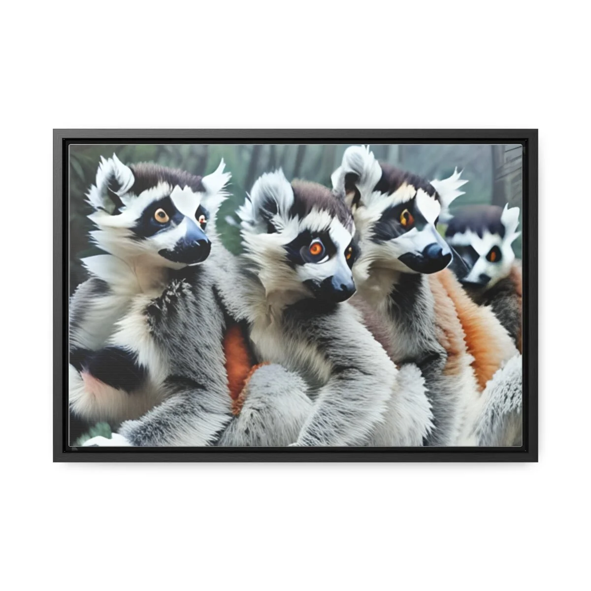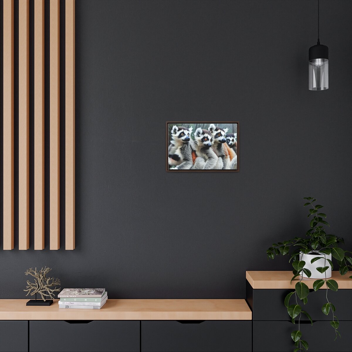 The Lemur Gang watercolor image will give any room a bit whimsical flair, and style. It's not something you are going to see every day. This horizontal gallery wrapped canvas print will always look as tight and flat as the day it was made. Every frame is built with a solid face to support the canvas and prevent deforming. Available in multiple sizes, comes in walnut and black frame options.