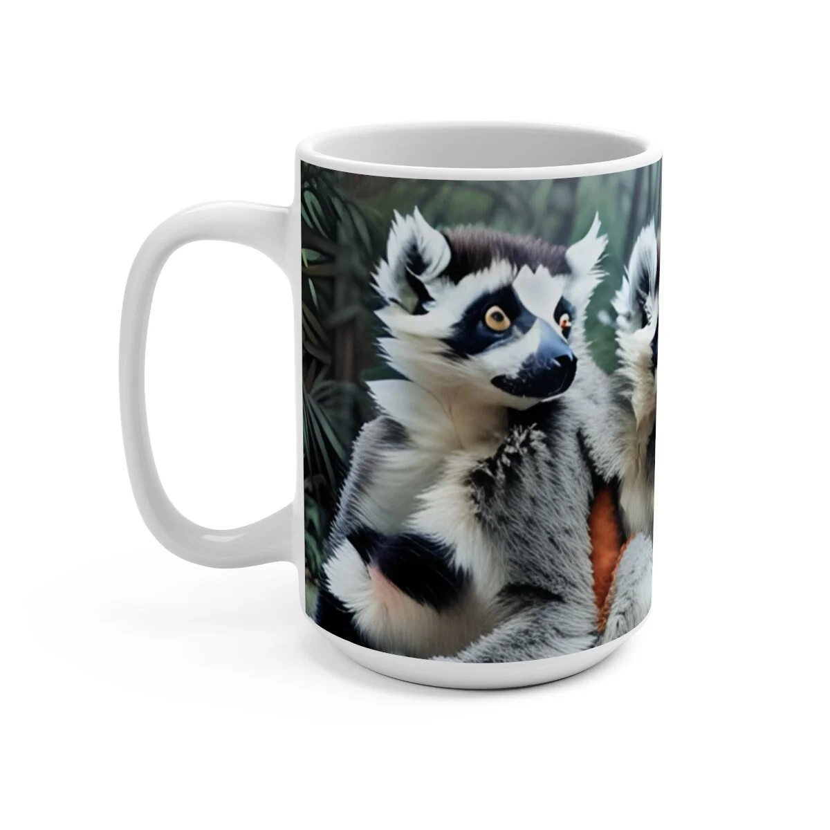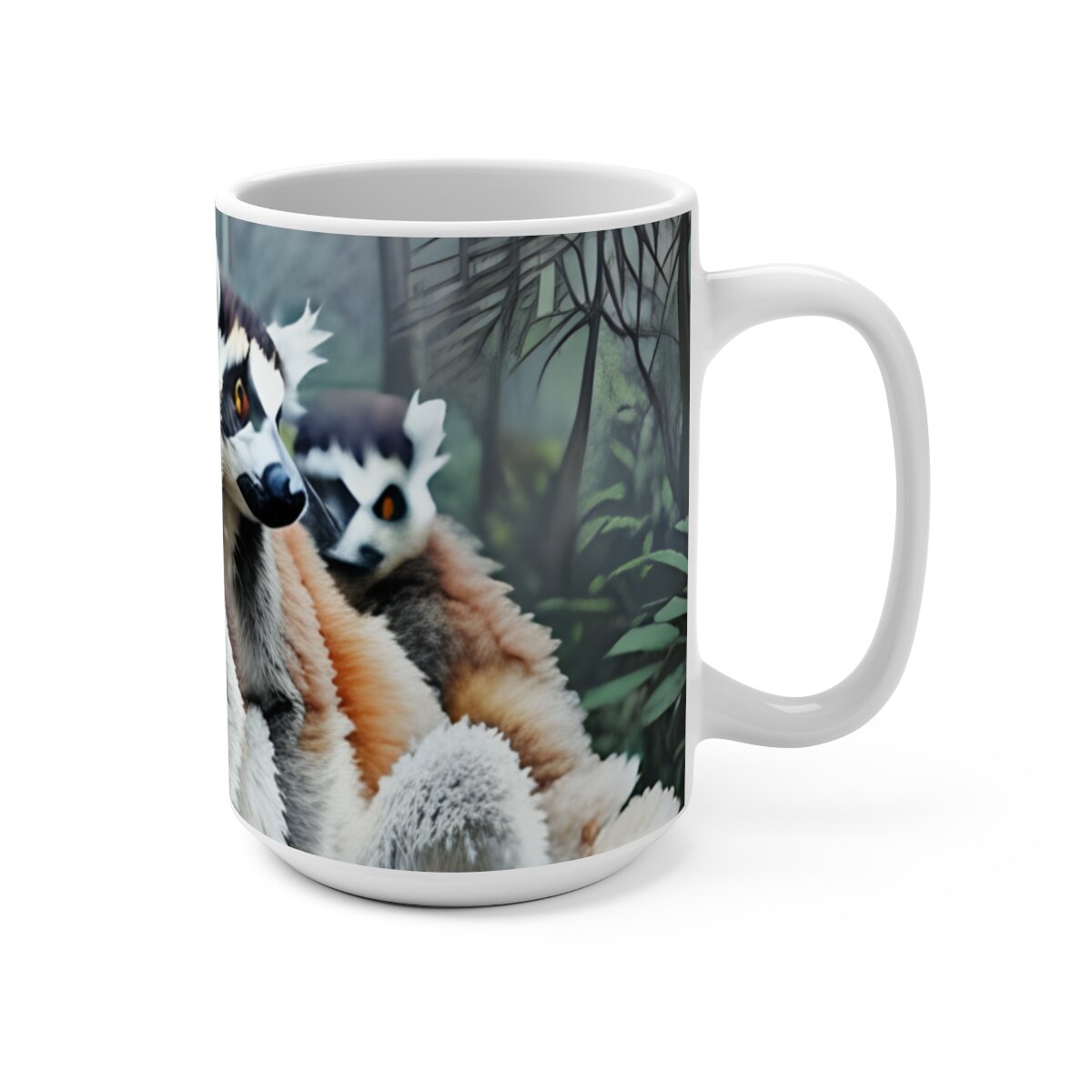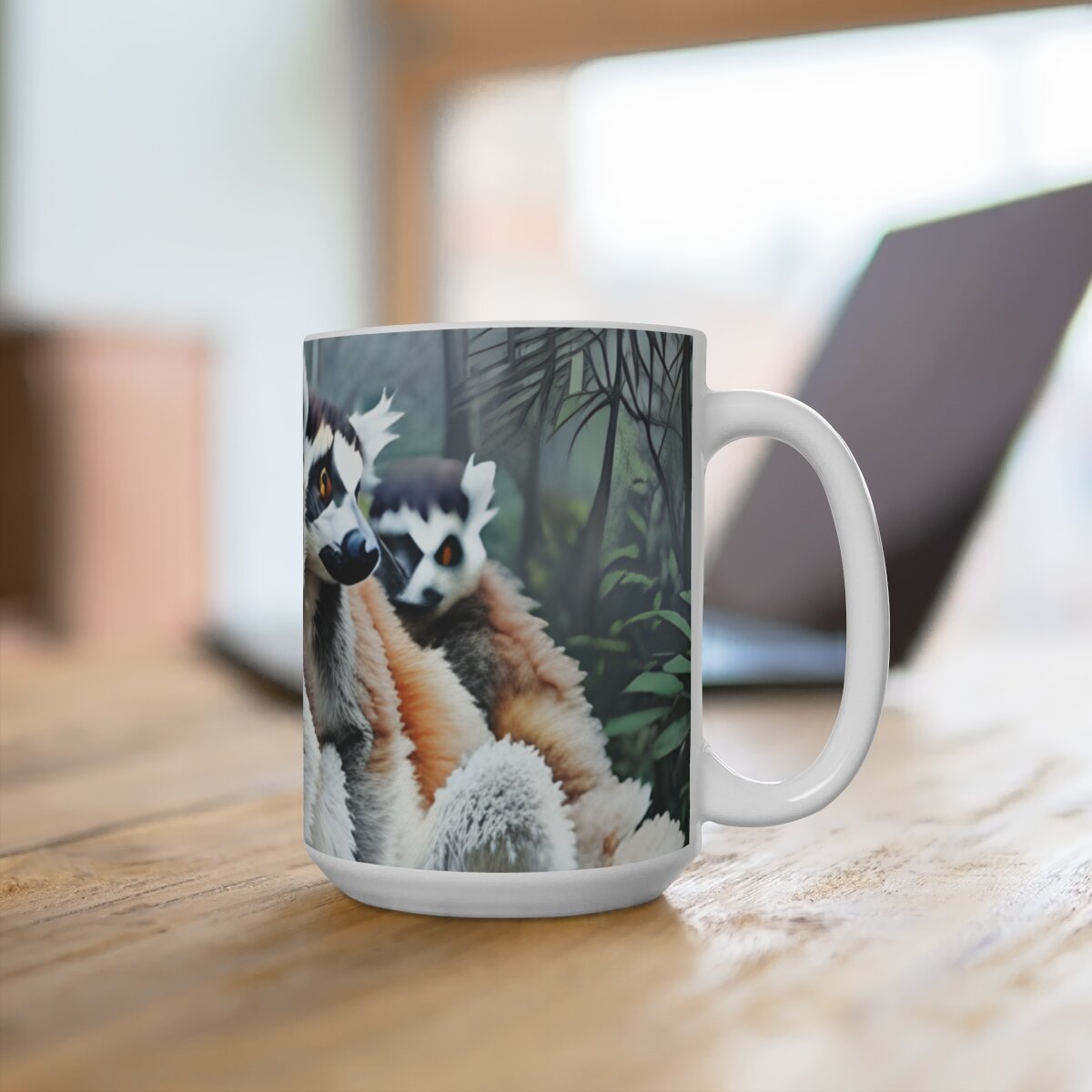 There's never too much coffee! A big size (15oz) white, durable ceramic mug is just what you need. While you are enjoying your coffee, tea or other hot beverage enjoy The Lemur Gang watercolor image. It adds a whimsical flair to the mug. This gorgeous, high quality mug is a great addition to your personal collection and it makes it an appreciated gift for every true hot beverage lover.