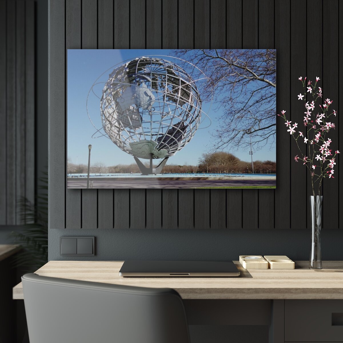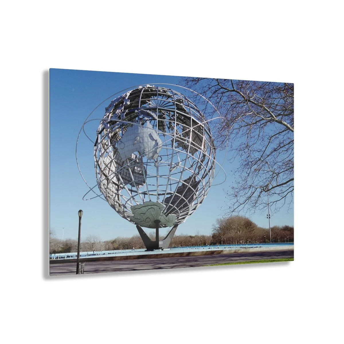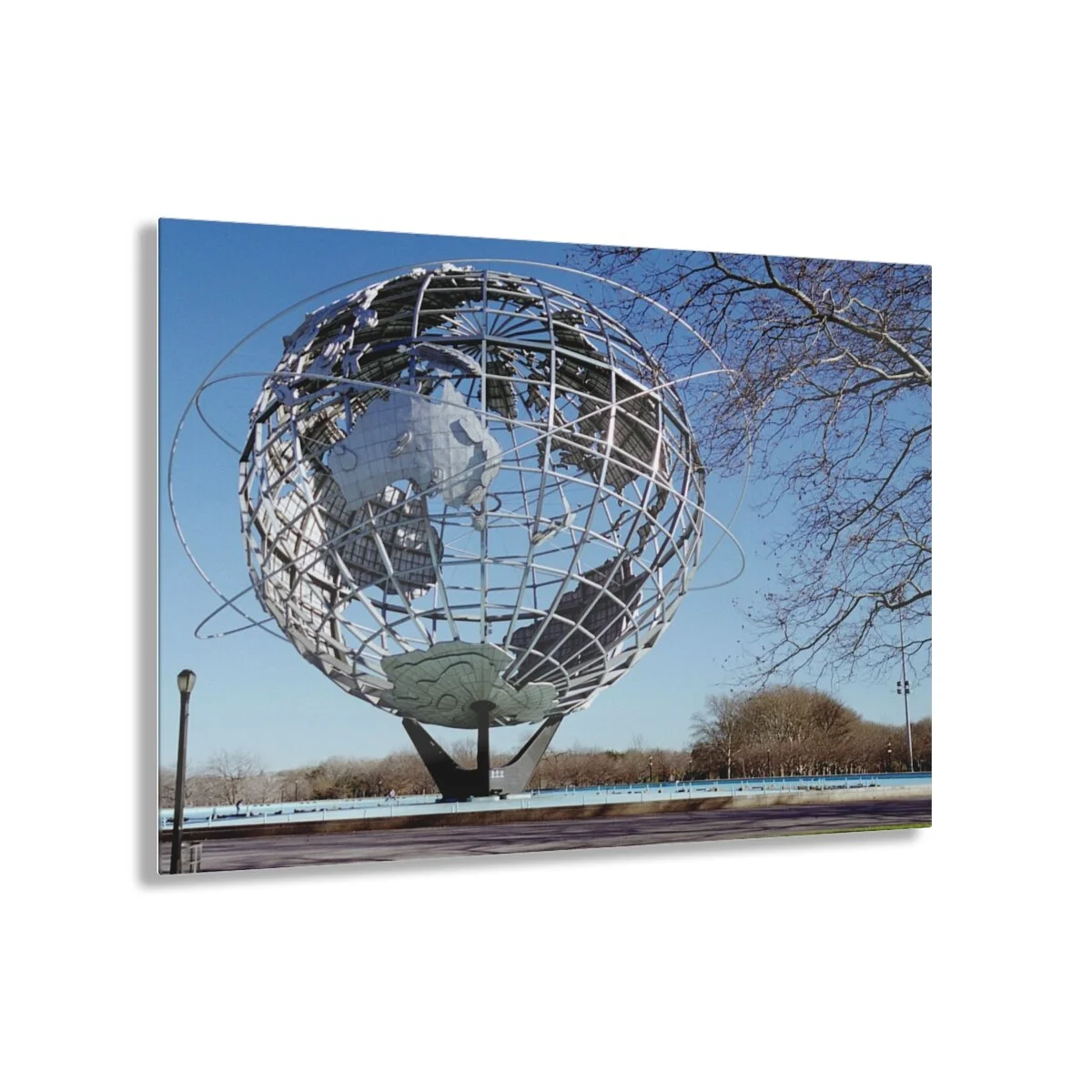 This photo is of the Unisphere, in New York's Flushing Meadow Park. The Unisphere was the centerpiece structure and symbol for the 1964-1965 World's Fair. These acrylic photo prints never fail to dazzle. Your images are second-surface printed directly on a 1/4" acrylic panel for a stunning result. Each acrylic print comes ready to hang, and floats 1.5" off the wall.