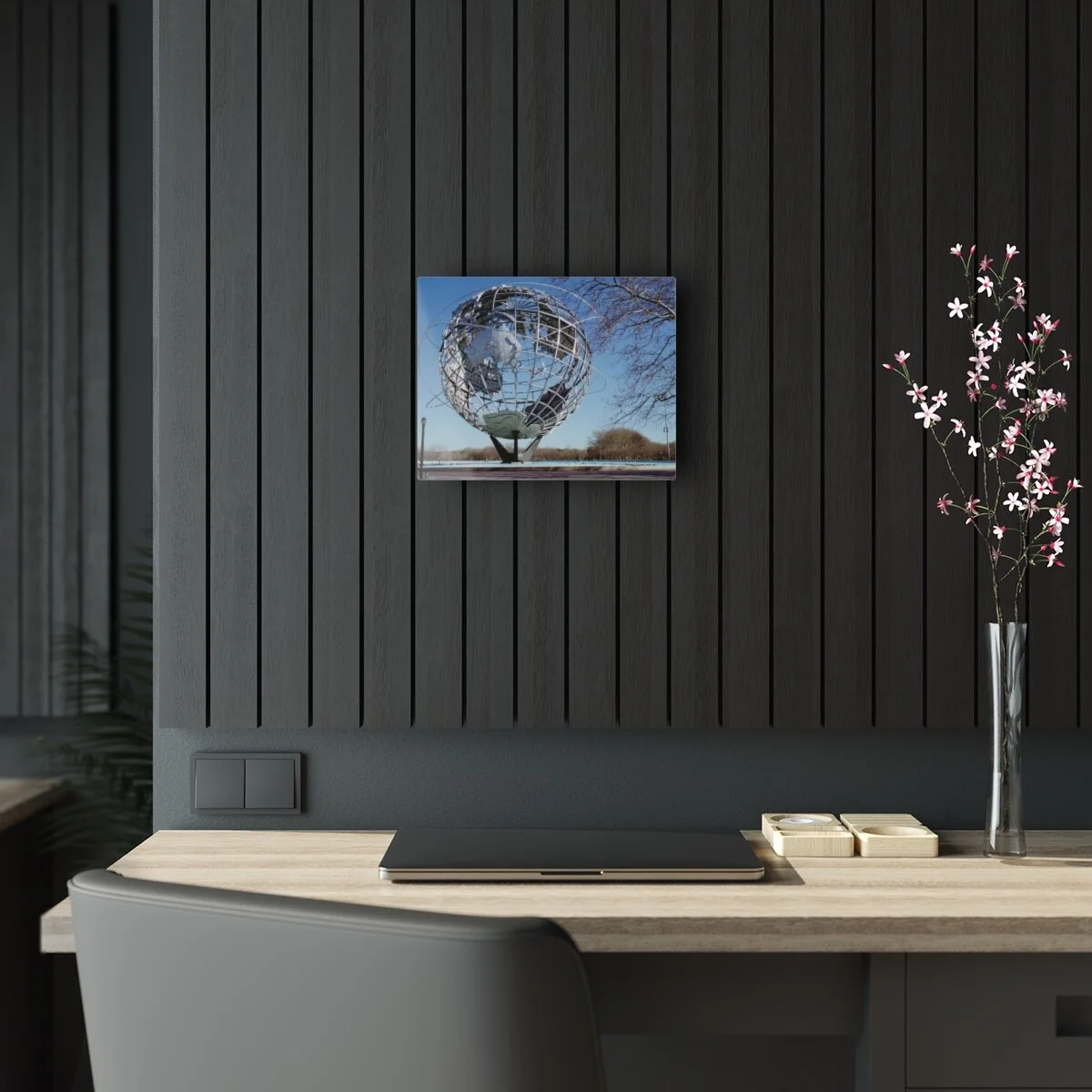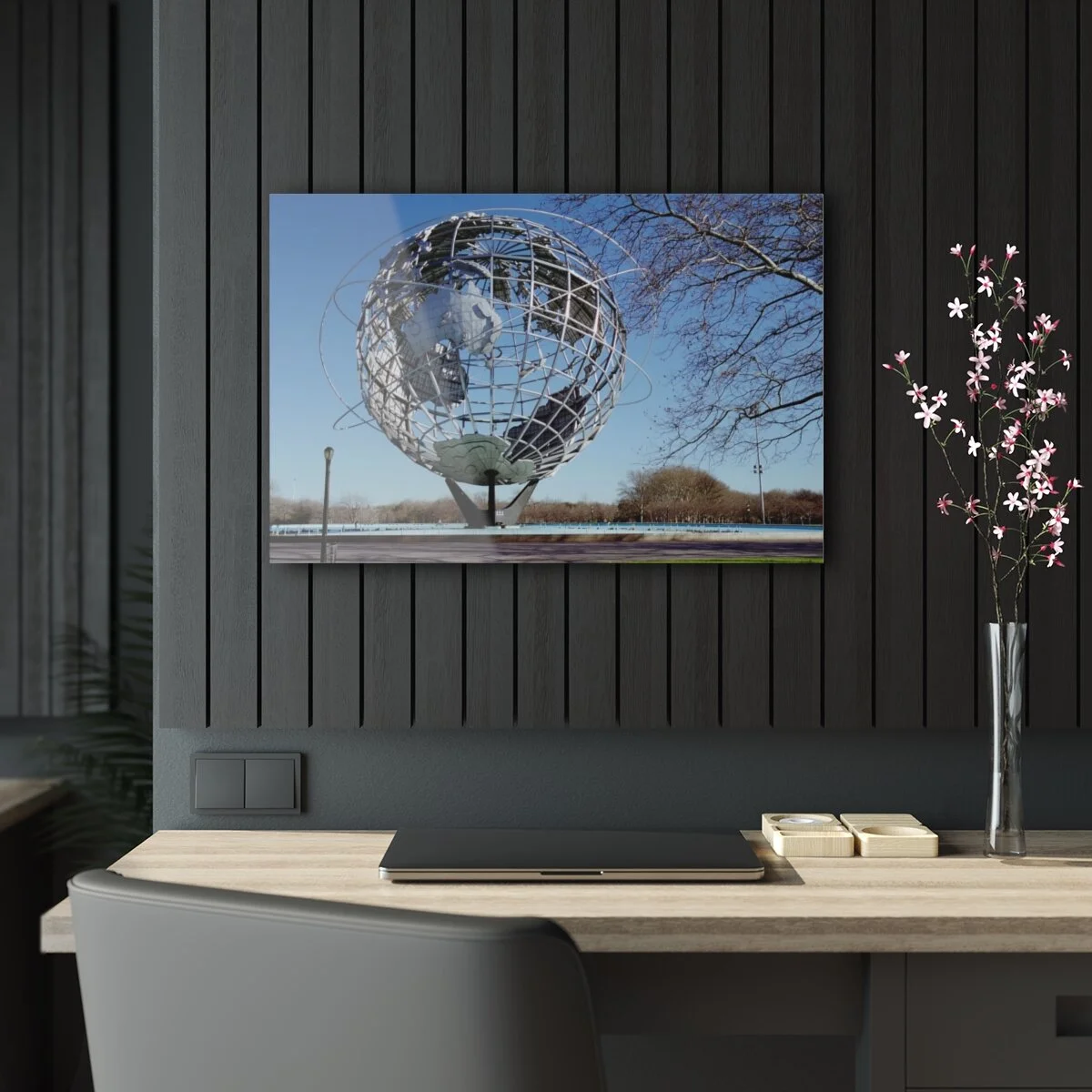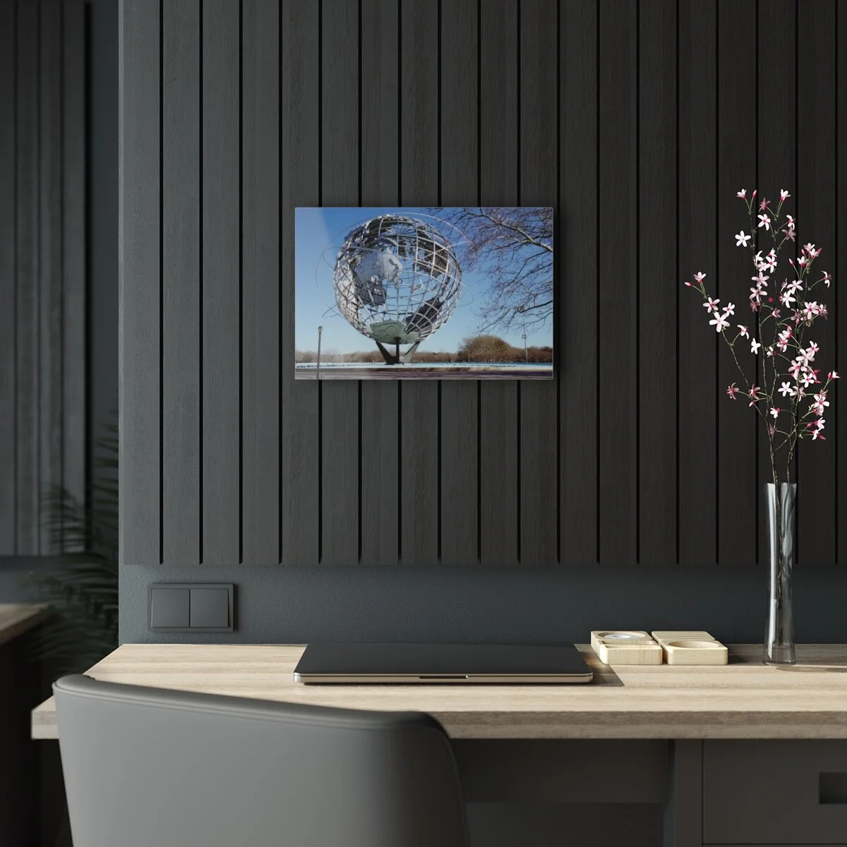 This photo is of the Unisphere, in New York's Flushing Meadow Park. The Unisphere was the centerpiece structure and symbol for the 1964-1965 World's Fair. These acrylic photo prints never fail to dazzle. Your images are second-surface printed directly on a 1/4" acrylic panel for a stunning result. Each acrylic print comes ready to hang, and floats 1.5" off the wall.