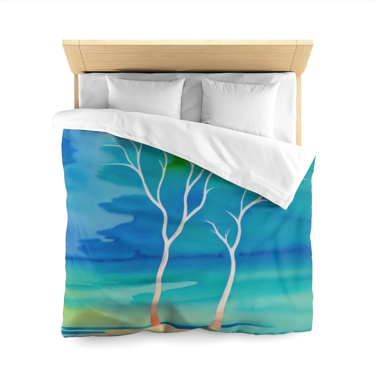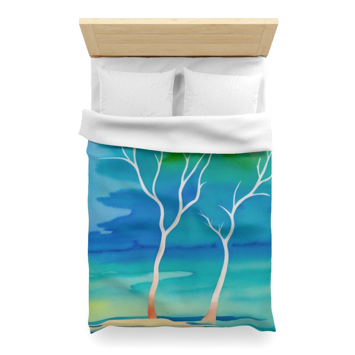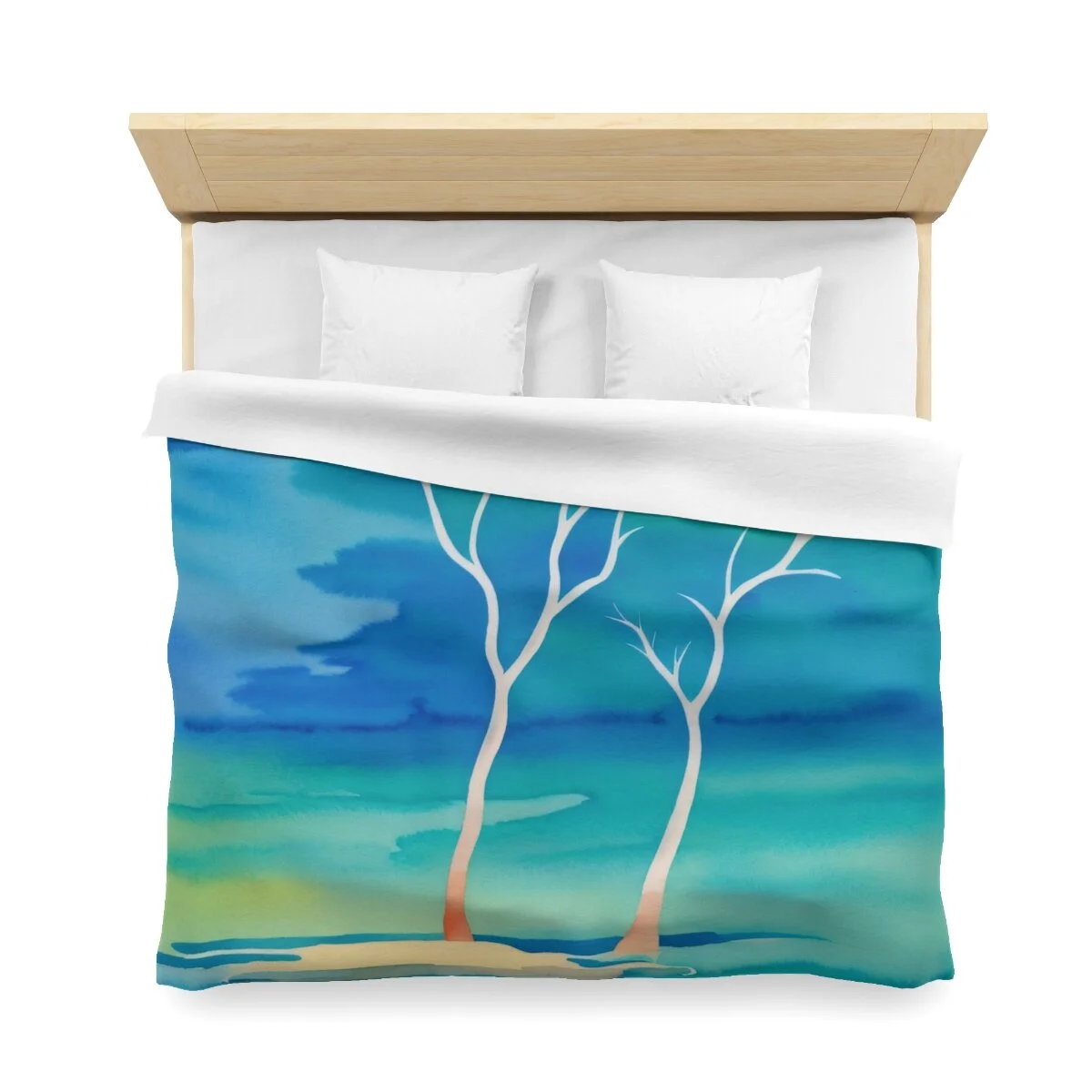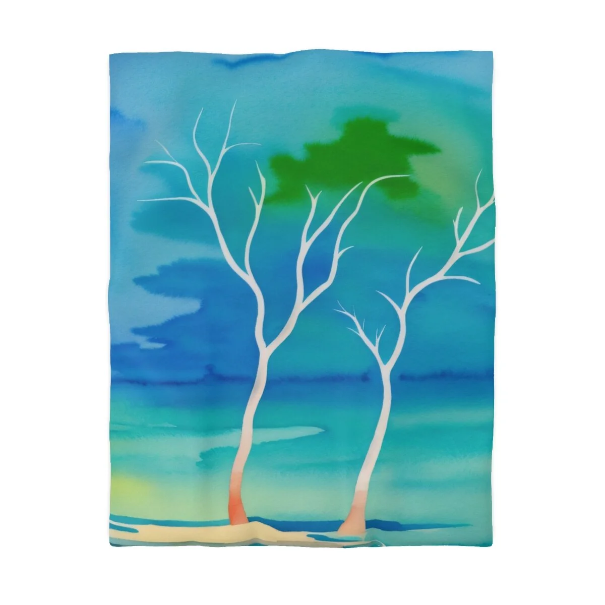 There is truly beauty in simplicity. This duvet cover is designed with the Winter Trees At The Lake watercolor image. Use its pastel palette of colors with other colors to create a distinctive bedroom that will put a smile on your face. Leave the bedroom doors open when guests come - everyone will want to see and admire this high quality super soft duvet cover with a durable print. This is your chance to combine both beautiful form and snuggly function. Equipped with concealed zipper closure at the bottom.