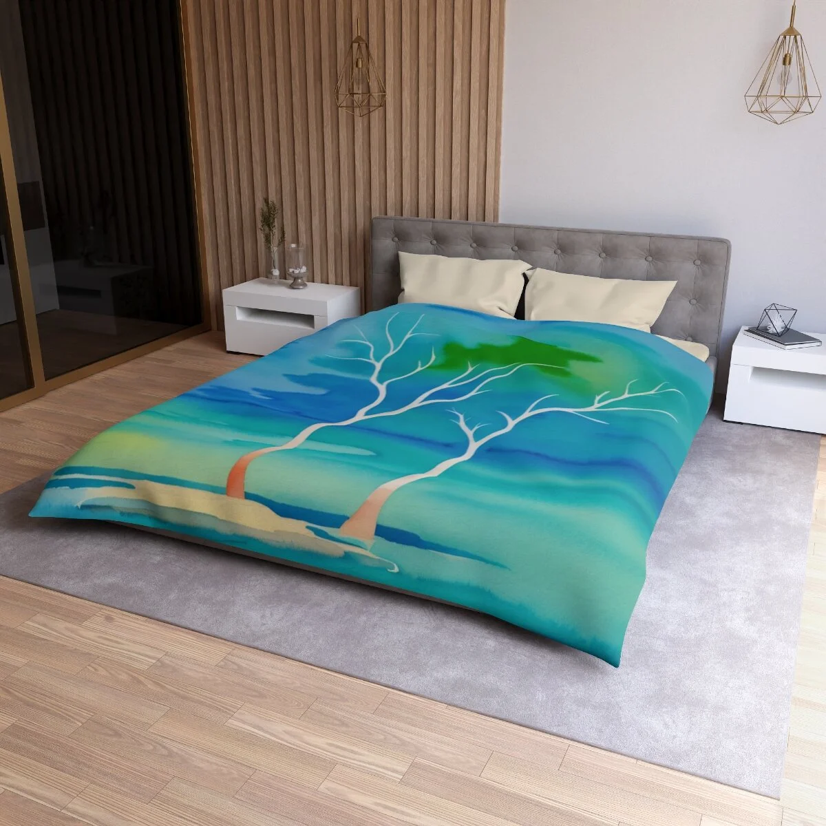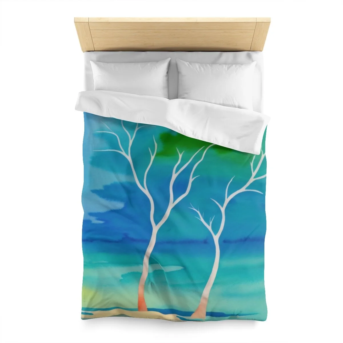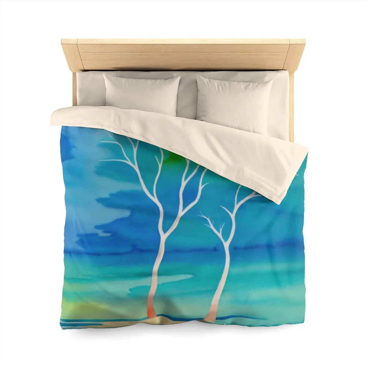 There is truly beauty in simplicity. This duvet cover is designed with the Winter Trees At The Lake watercolor image. Use its pastel palette of colors with other colors to create a distinctive bedroom that will put a smile on your face. Leave the bedroom doors open when guests come - everyone will want to see and admire this high quality super soft duvet cover with a durable print. This is your chance to combine both beautiful form and snuggly function. Equipped with concealed zipper closure at the bottom.