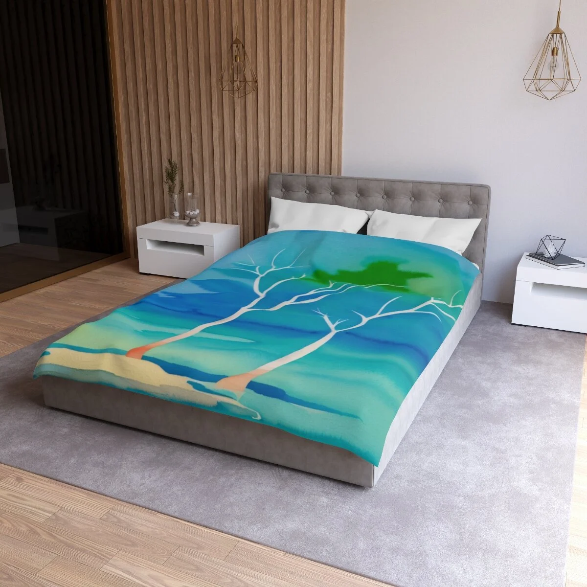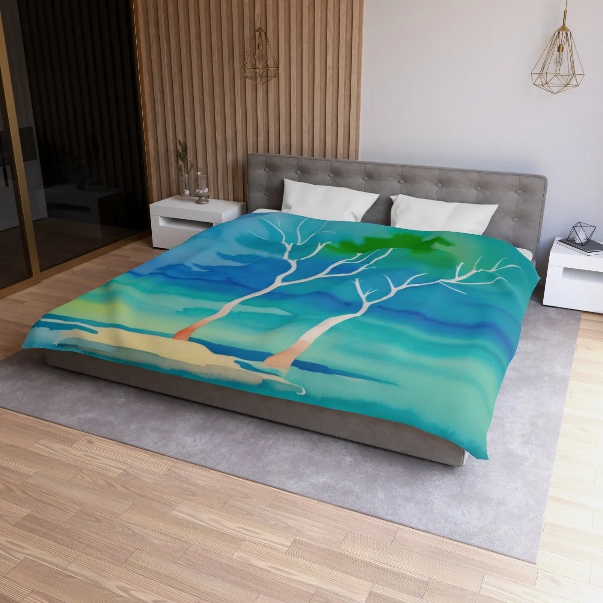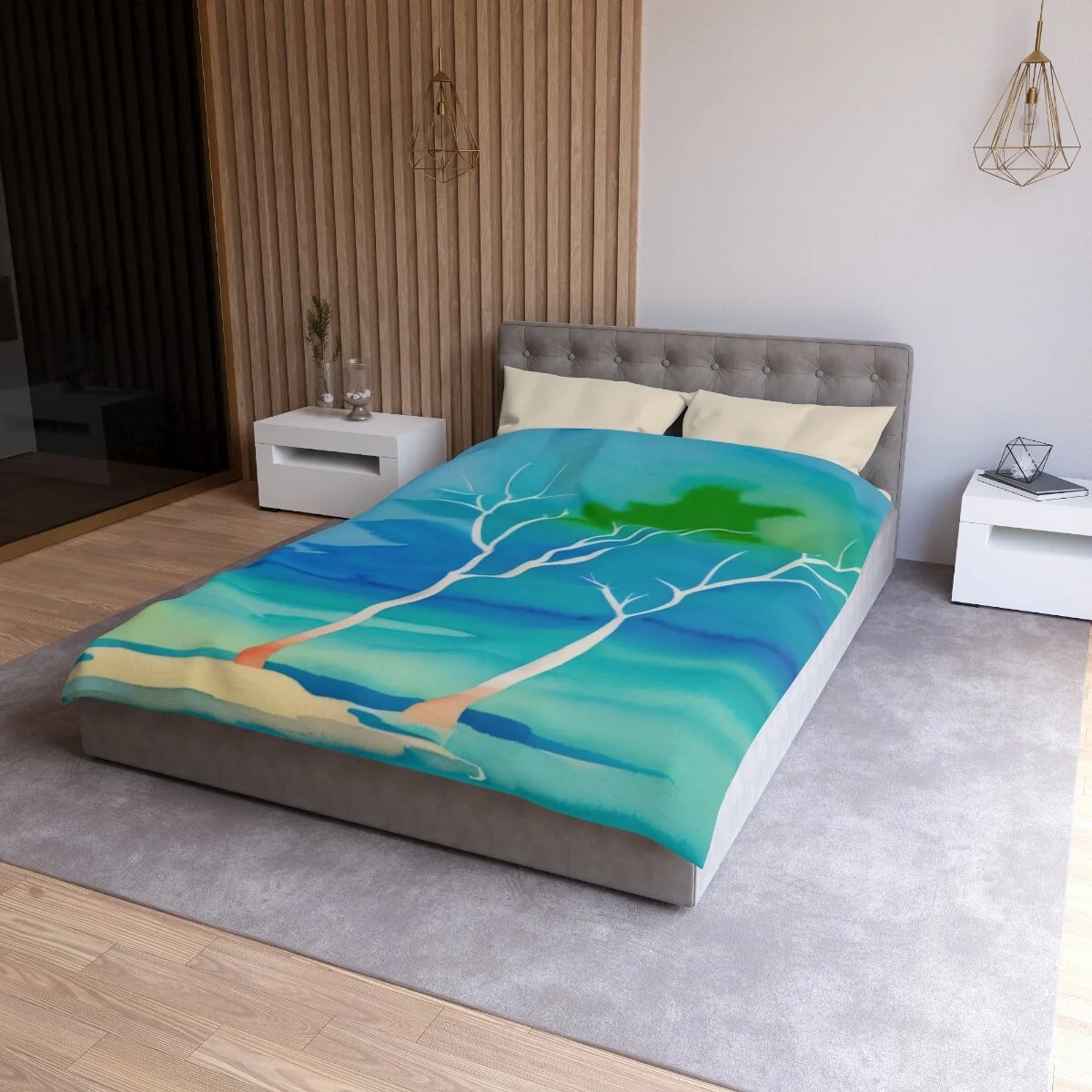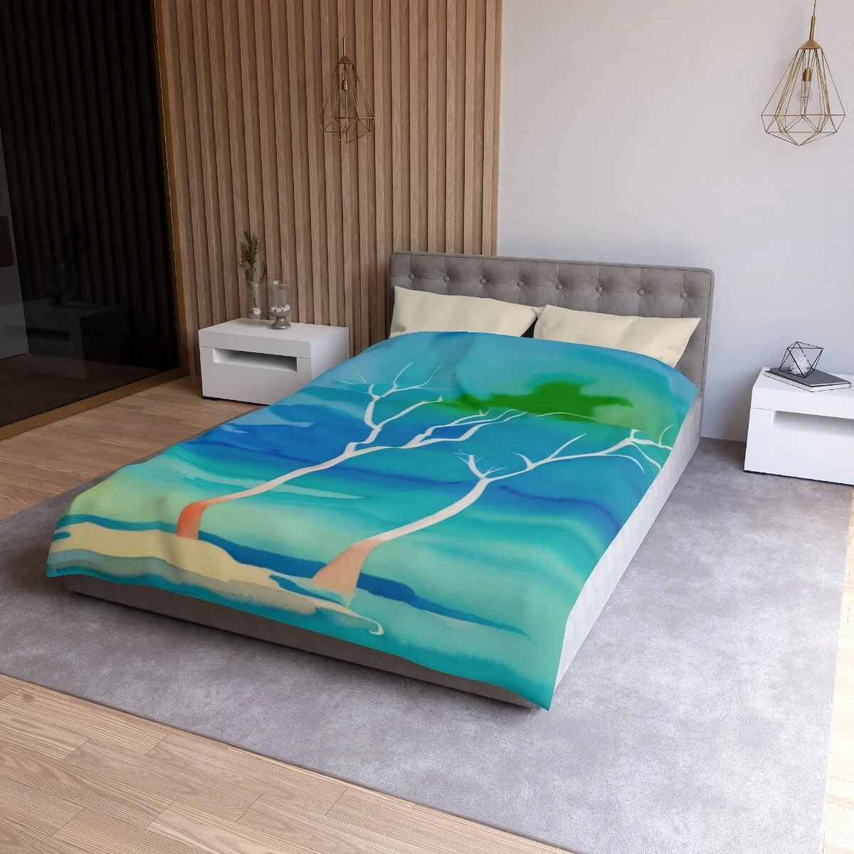 There is truly beauty in simplicity. This duvet cover is designed with the Winter Trees At The Lake watercolor image. Use its pastel palette of colors with other colors to create a distinctive bedroom that will put a smile on your face. Leave the bedroom doors open when guests come - everyone will want to see and admire this high quality super soft duvet cover with a durable print. This is your chance to combine both beautiful form and snuggly function. Equipped with concealed zipper closure at the bottom.